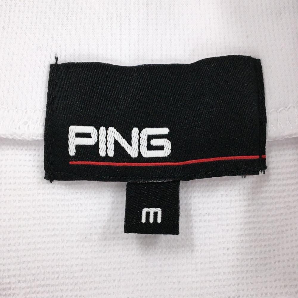 【超美品】ピン 半袖ハイネックシャツ 白×黒×イエロー フロントロゴ メンズ M ゴルフウェア PING