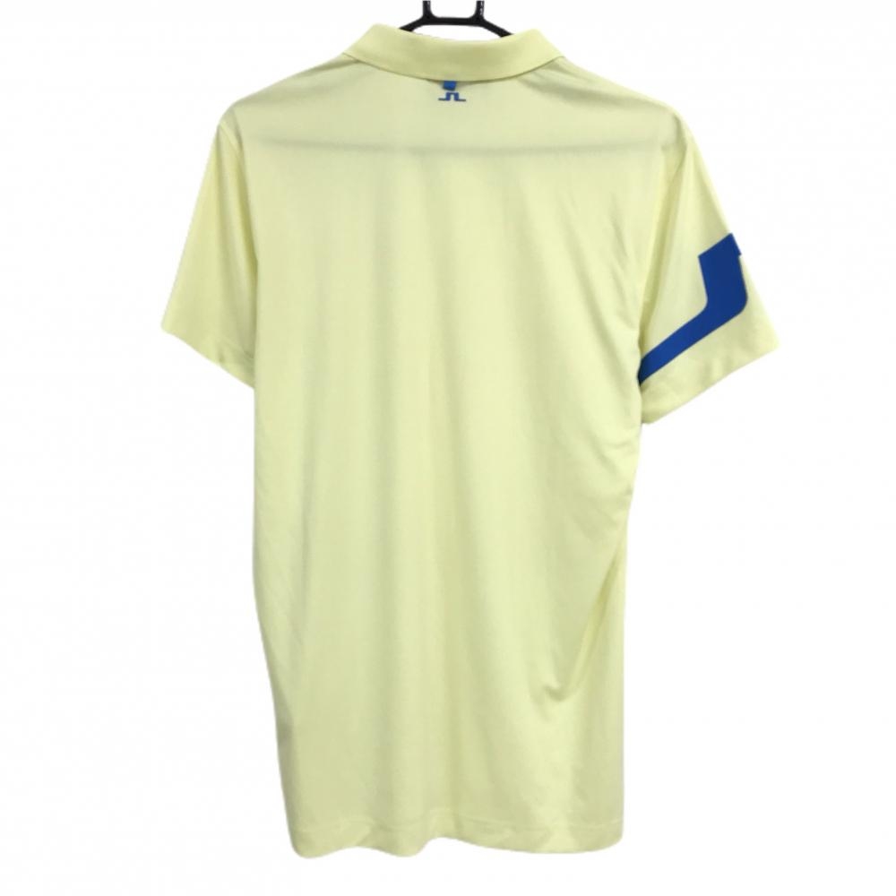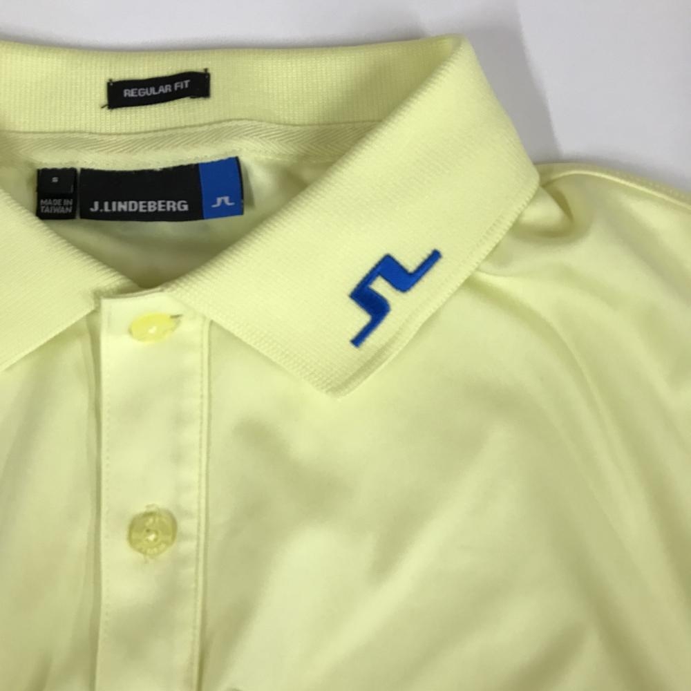 【超美品】ジェイリンドバーグ 半袖ポロシャツ イエロー×ブルー 襟刺しゅう 袖ロゴ メンズ S ゴルフウェア J.LINDEBERG
