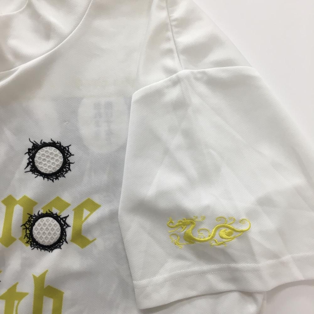 【超美品】ダンスウィズドラゴン 半袖ハイネックシャツ 白×黒×イエロー 北斗の拳 ジャギ メンズ 3(L) ゴルフウェア Dance With Dragon