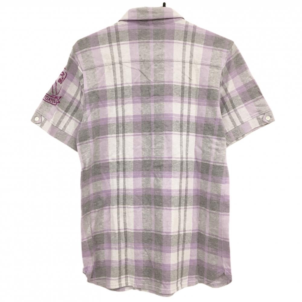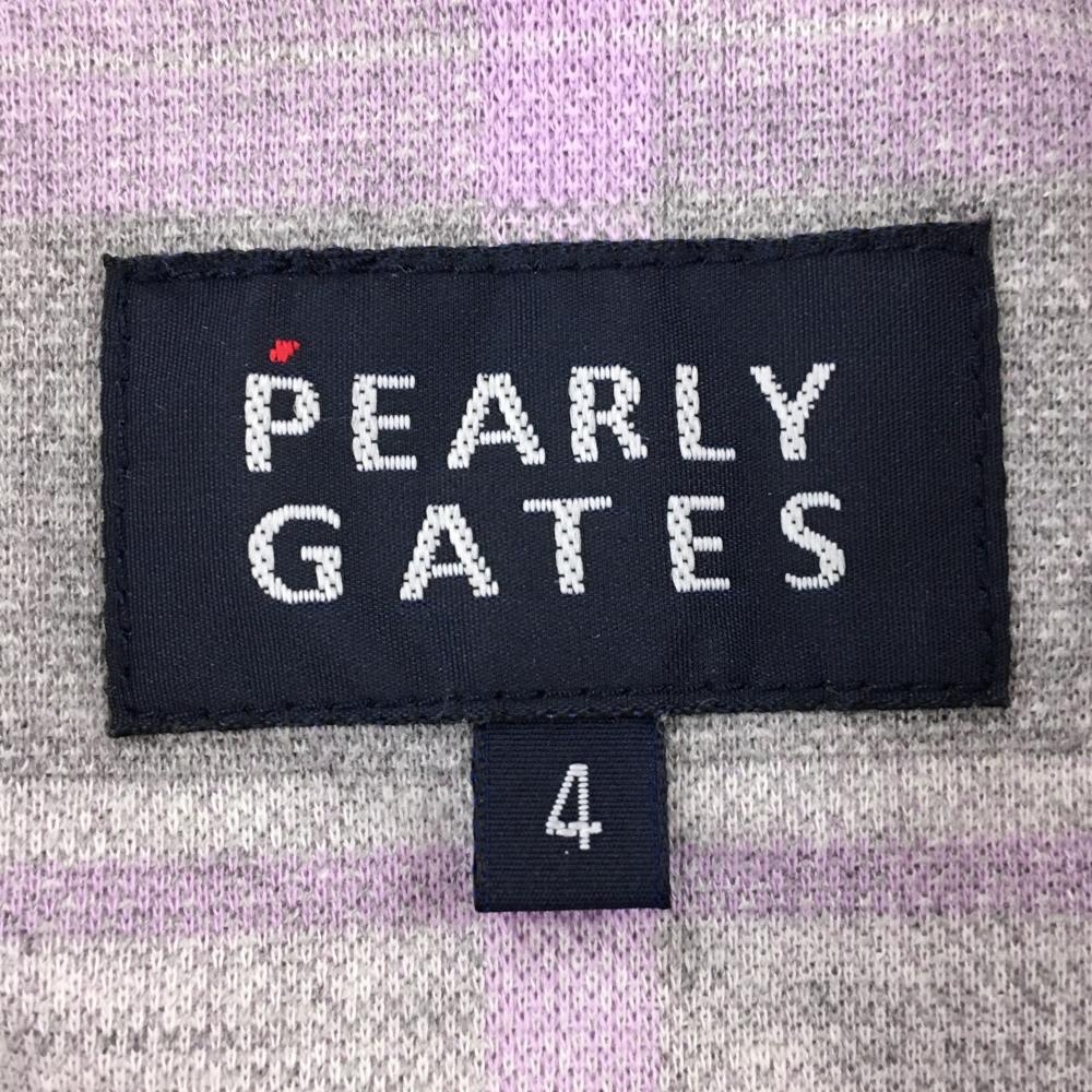 【超美品】パーリーゲイツ 半袖ポロシャツ グレー×ライトパープル チェック ロゴ メンズ 4(M) ゴルフウェア PEARLY GATES