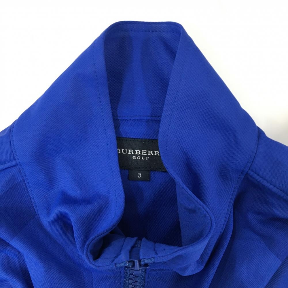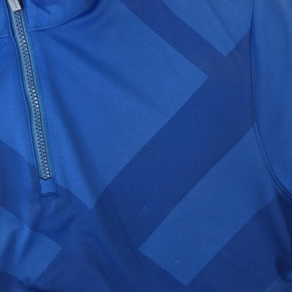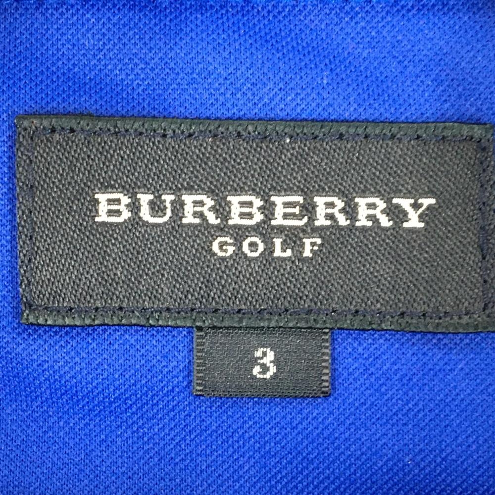 バーバリーゴルフ 半袖ハイネックシャツ ブルー 前面チェック ハーフジップ メンズ 3(L) ゴルフウェア BURBERRY GOLF