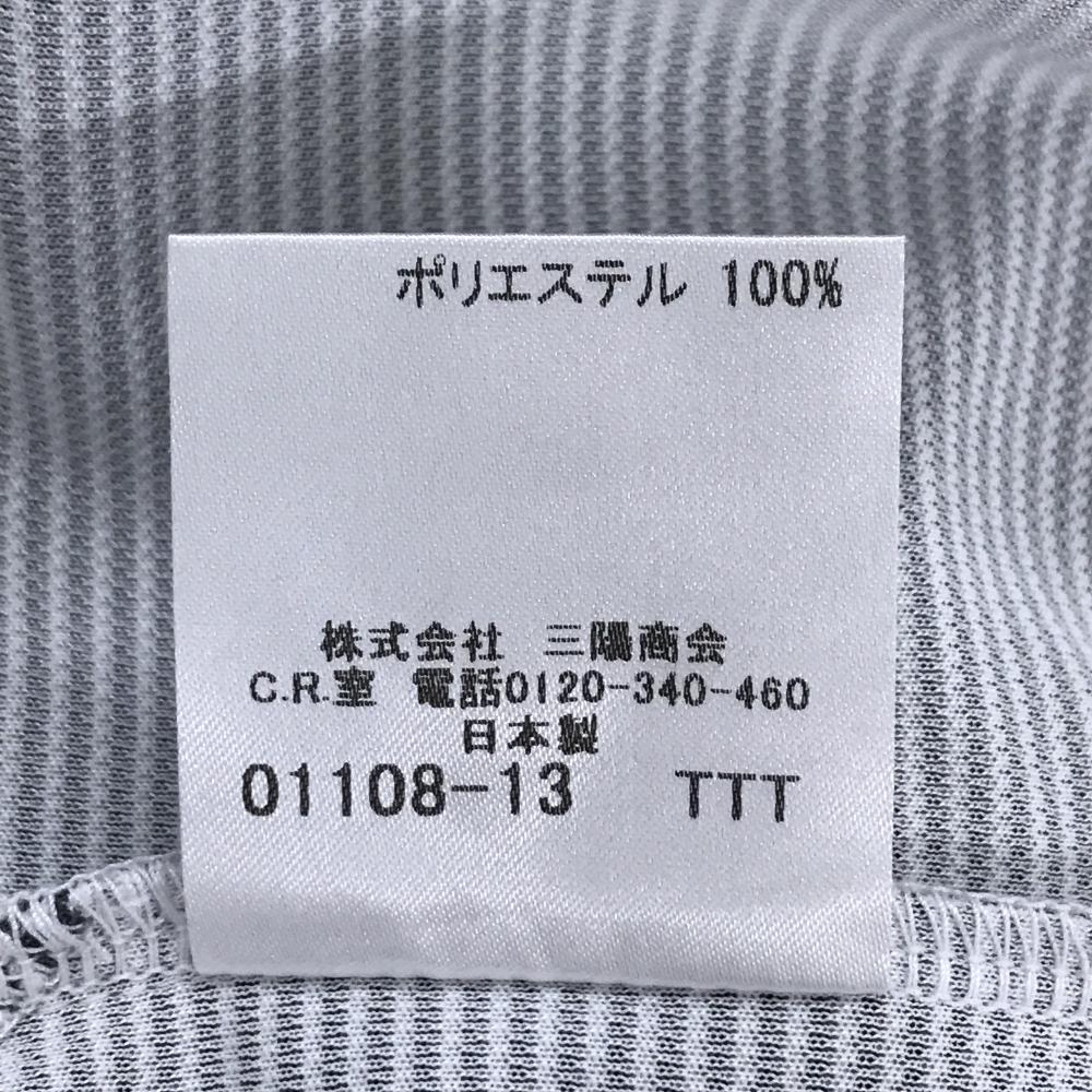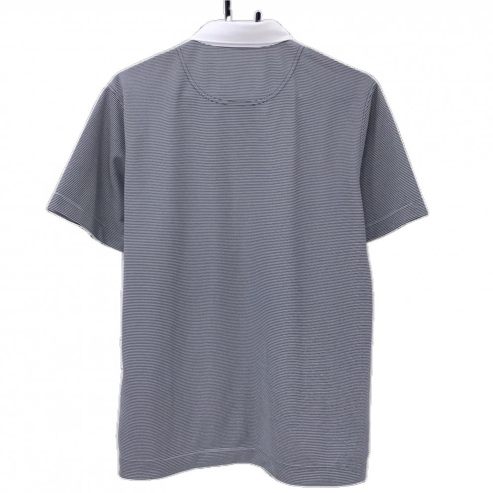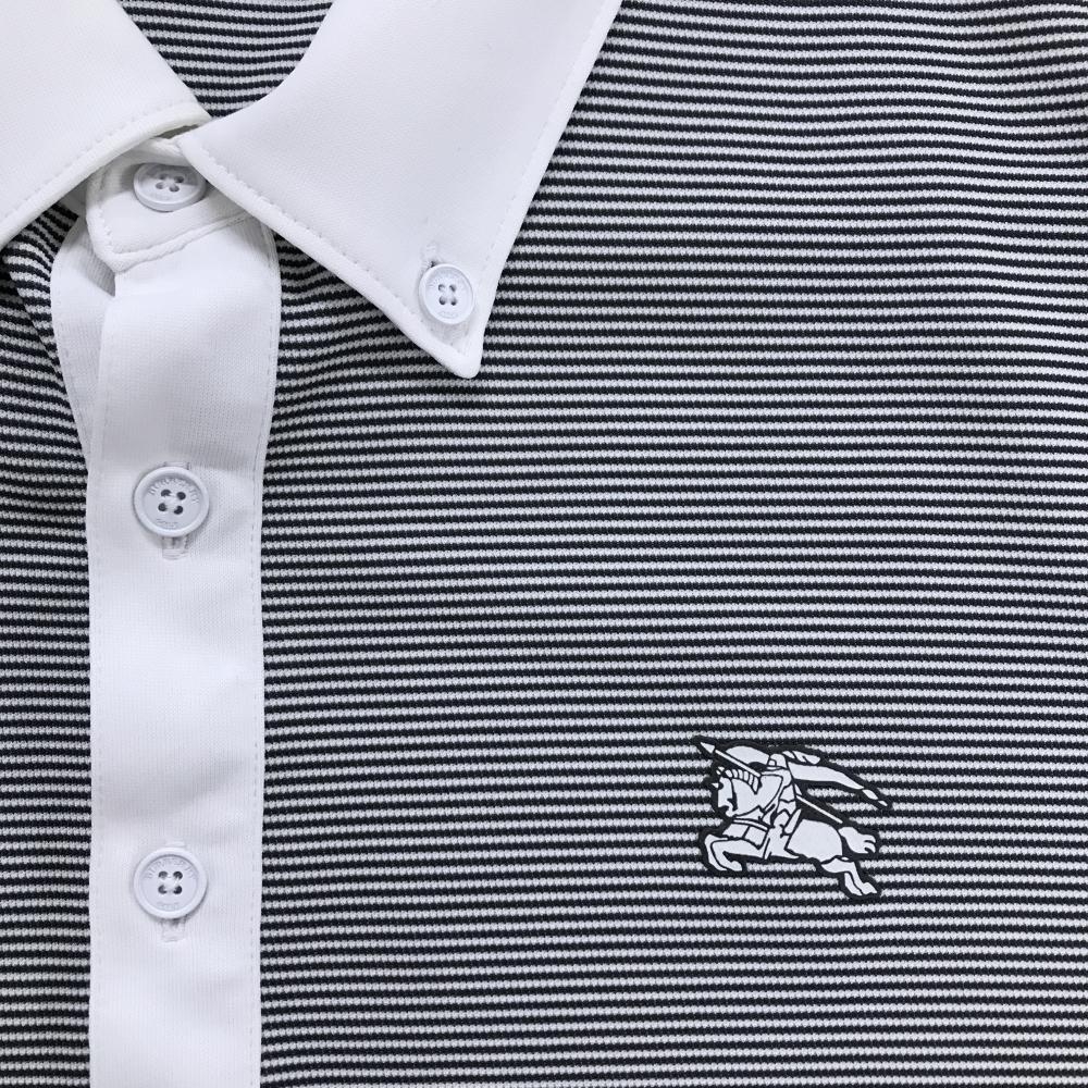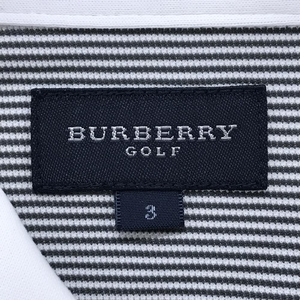 【超美品】バーバリーゴルフ 半袖ポロシャツ ダークグレー系×白 細ボーダー ボタンダウン メンズ 3(L) ゴルフウェア BURBERRY GOLF