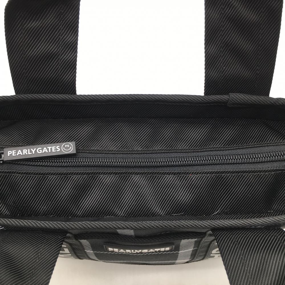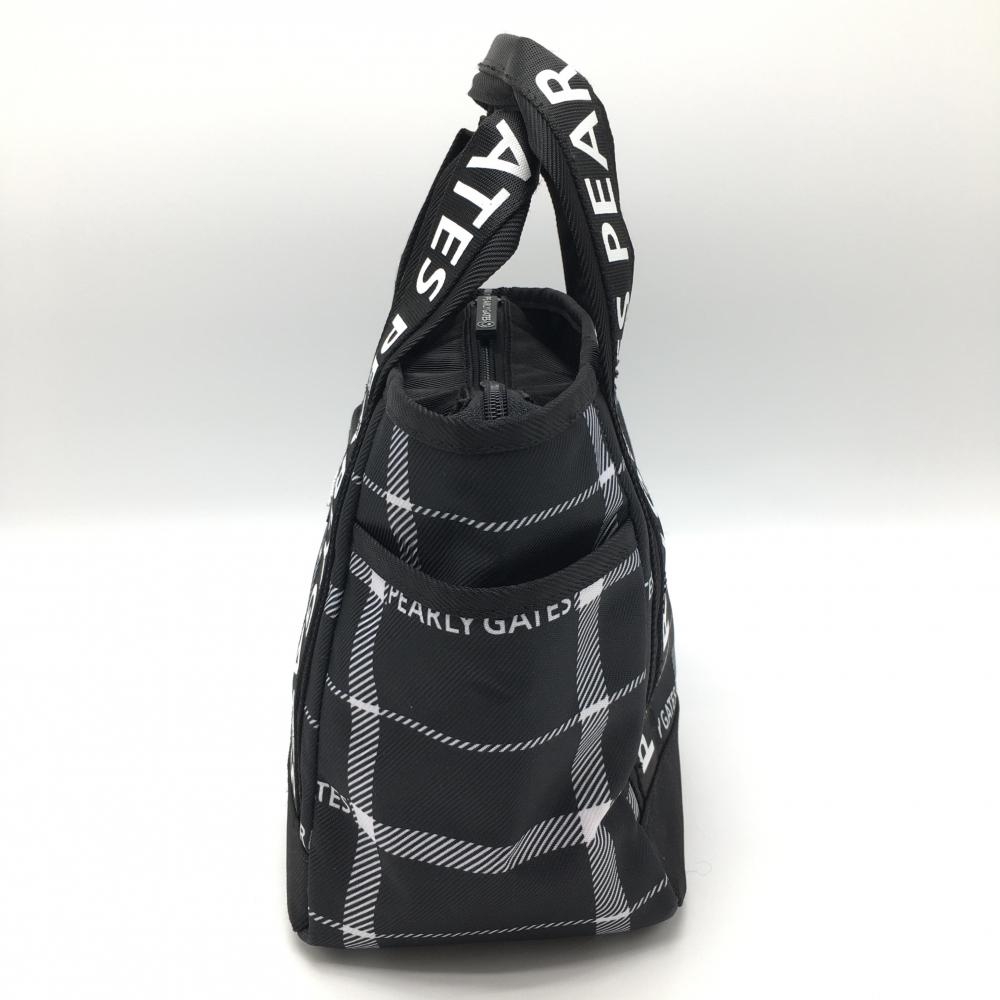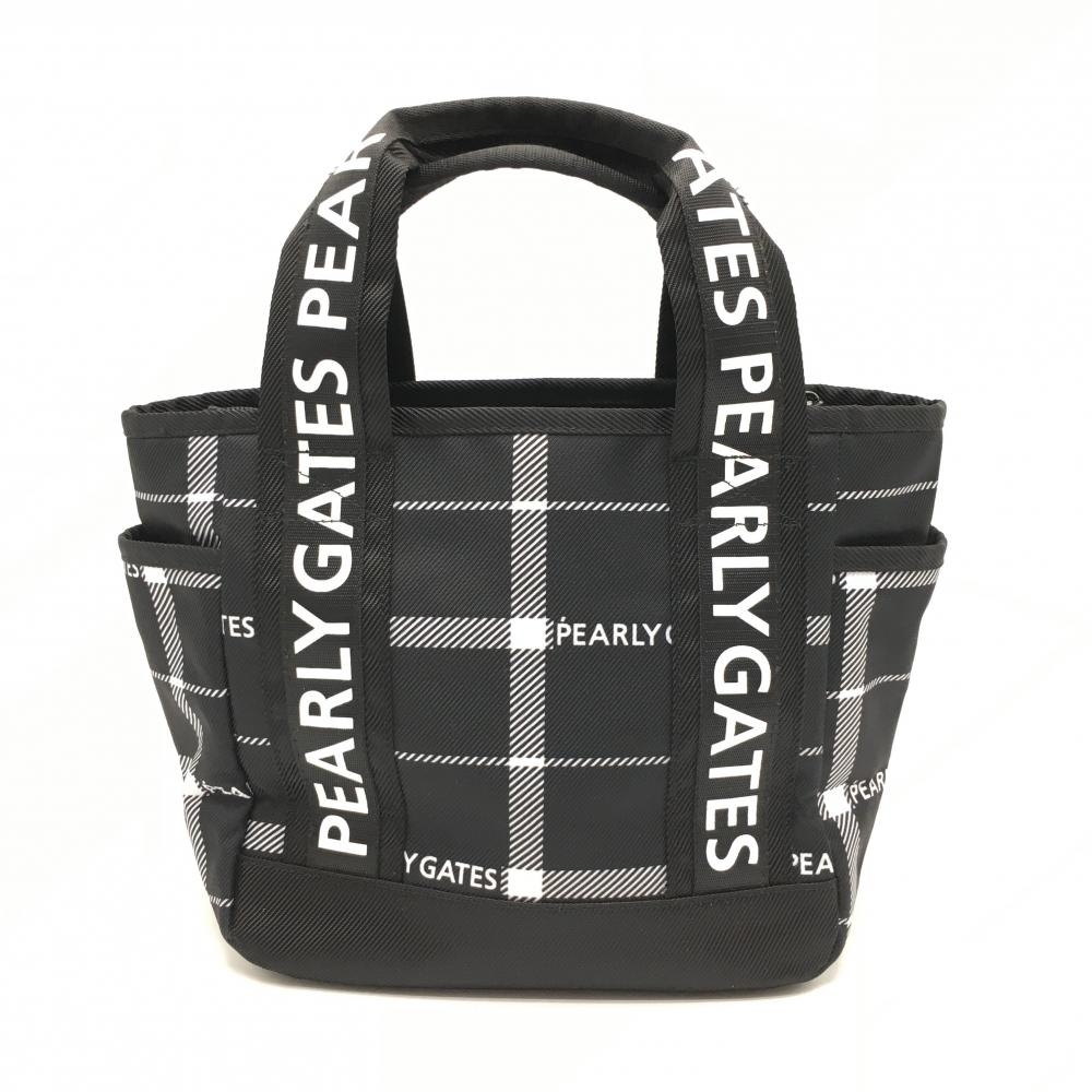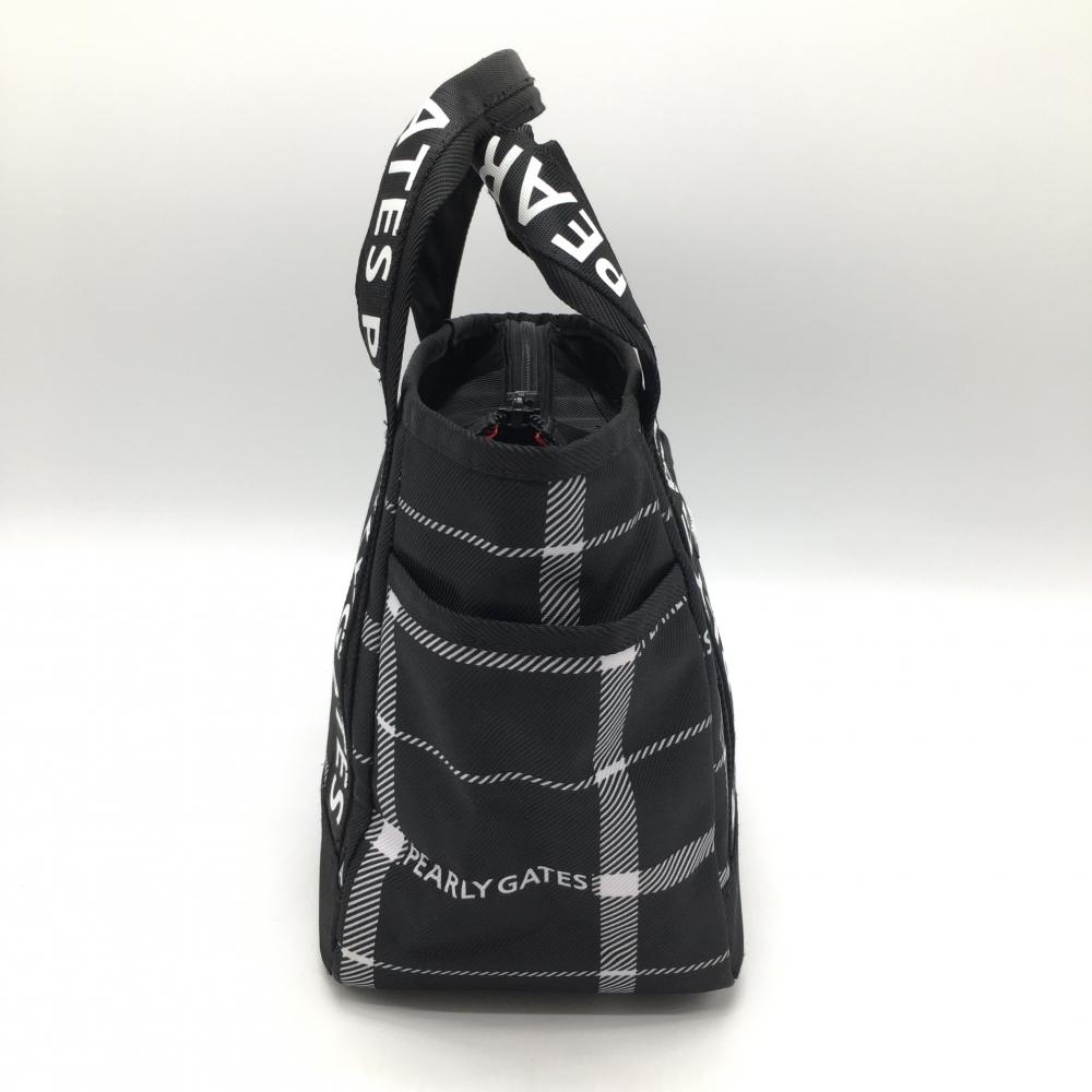 【超美品】パーリーゲイツ カートバッグ 黒×白 チェック 内外ポケット 内側ニコちゃん ゴルフ PEARLY GATES