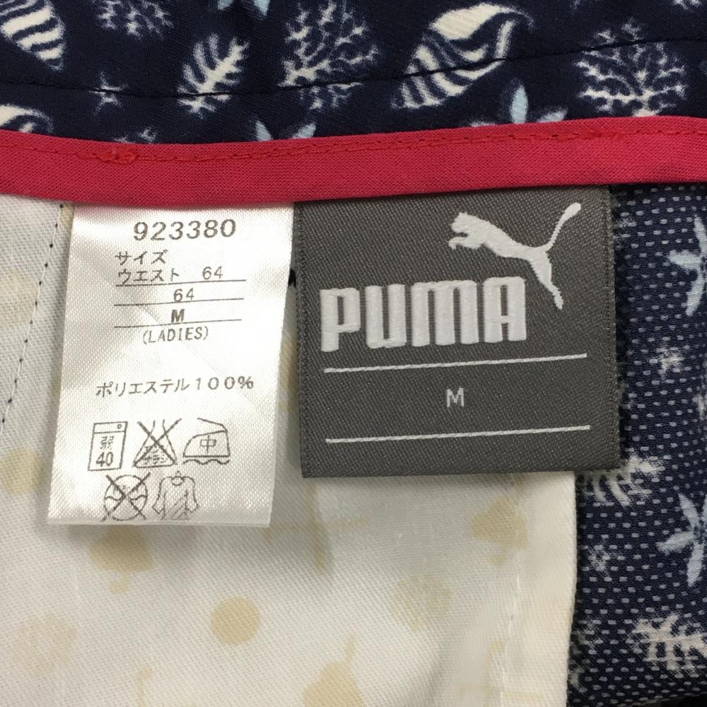 【超美品】プーマ スカート ネイビー×白 総柄 花 貝殻 ロゴ刺しゅう レディース M ゴルフウェア PUMA