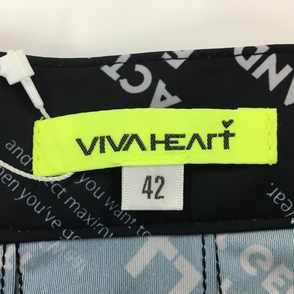 【新品】ビバハート プリーツスカート ネイビー×白 英字総柄 レディース 42(L) ゴルフウェア VIVA HEART