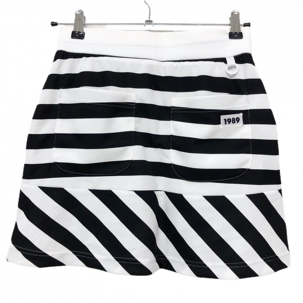 【新品】パーリーゲイツ スカート 白×黒 ボーダー ウエストゴム&調節紐 レディース 0(S) ゴルフウェア 2023年モデル PEARLY GATES