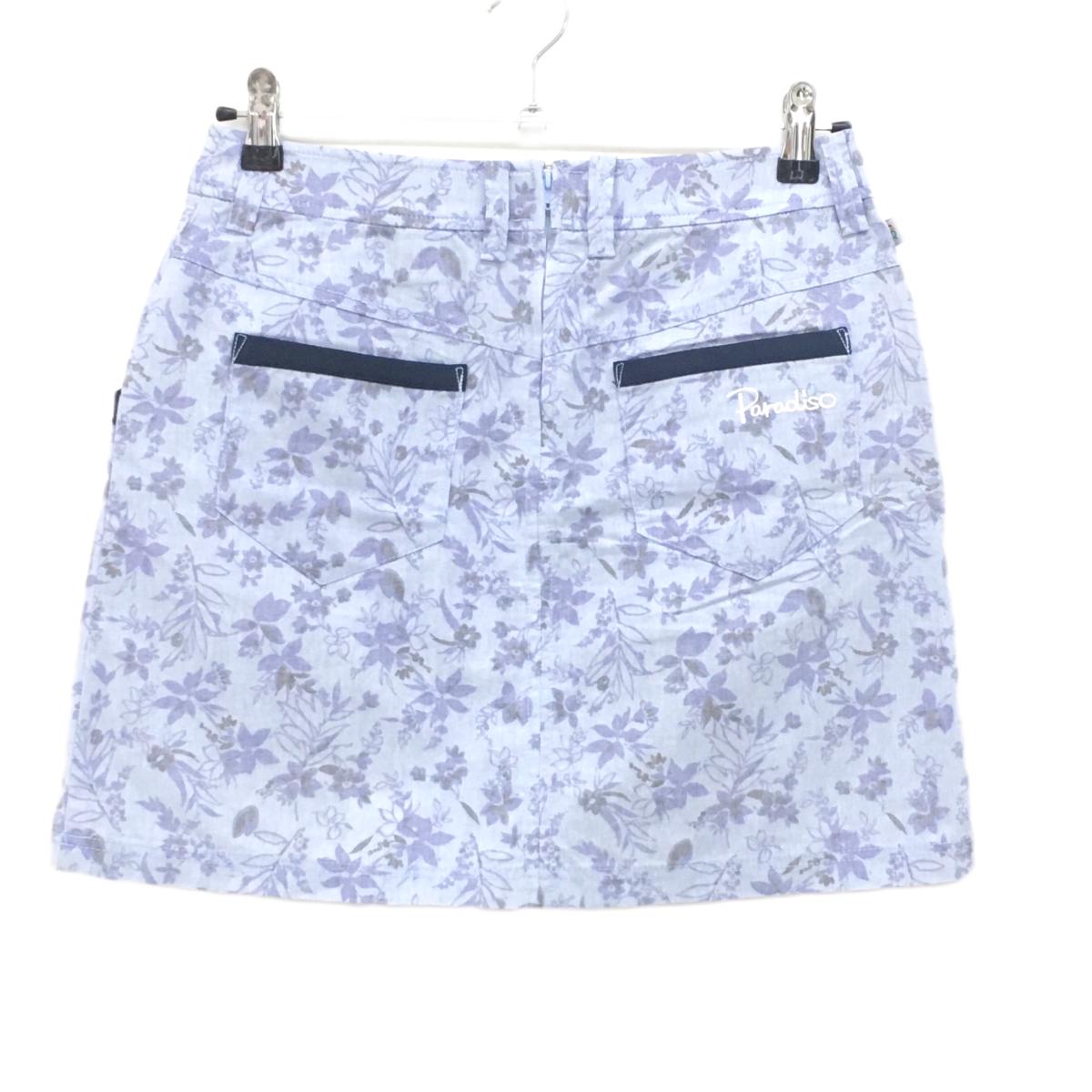 【美品】パラディーゾ スカート ライトグレー×パープル 花柄 ロゴ刺しゅう レディース M ゴルフウェア Paradiso