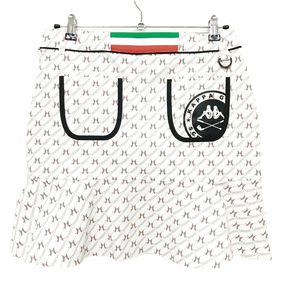 【新品】カッパ スカート 白×グリーン ロゴ総柄 レディース L ゴルフウェア Kappa
