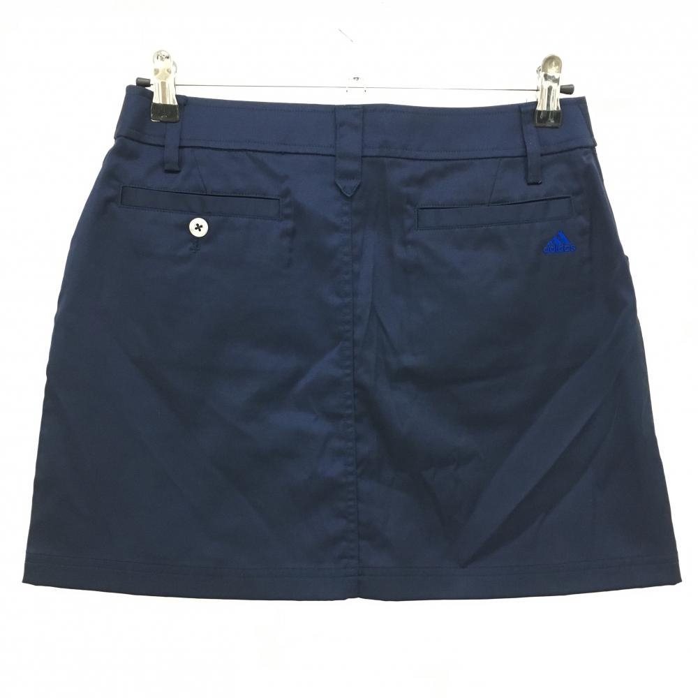 【超美品】アディダス スカート ネイビー 無地 ロゴ刺しゅう ウエスト内側チェック柄 レディース L/G ゴルフウェア adidas