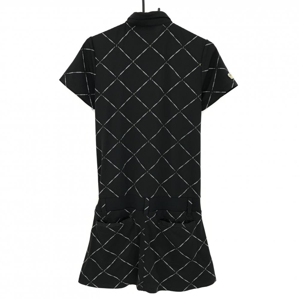 フィラゴルフ 半袖ポロワンピース 黒×白 ダイヤ柄 胸元ワッペン レディース LL ゴルフウェア FILA GOLF