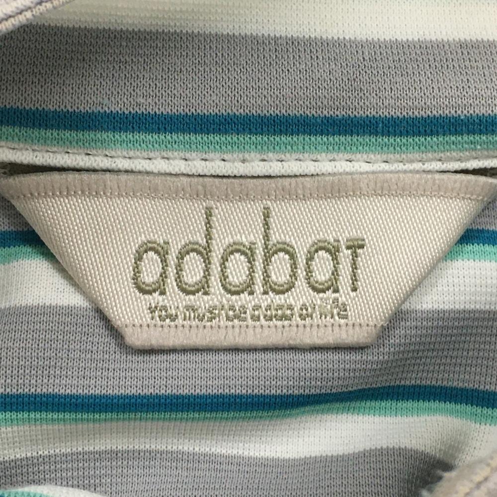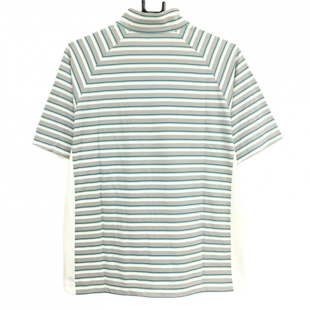 アダバット 半袖ハイネックシャツ グレー×白 ボーダー ハーフジップ メンズ 48(L) ゴルフウェア adabat