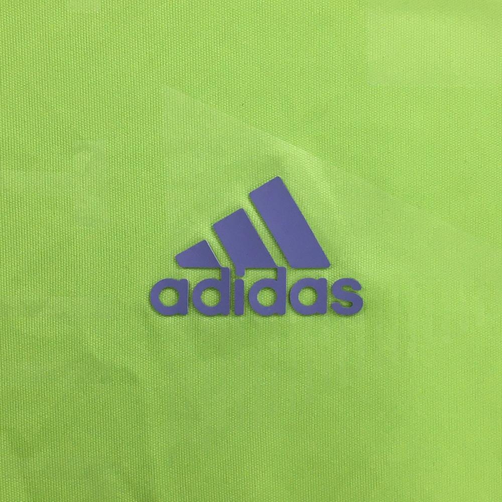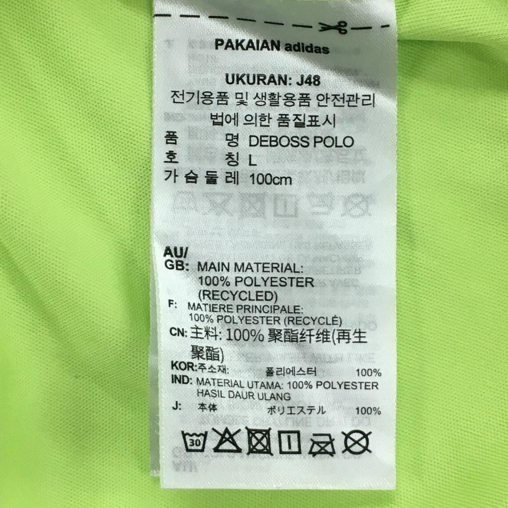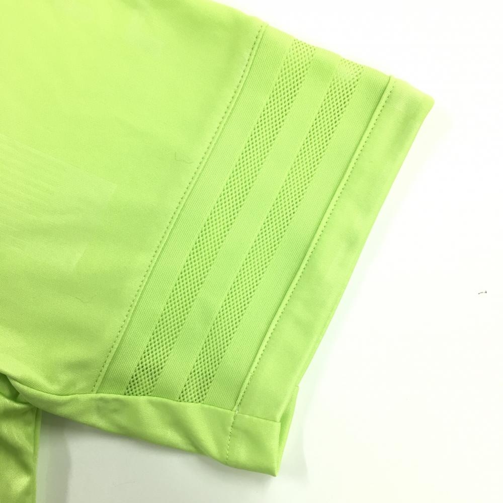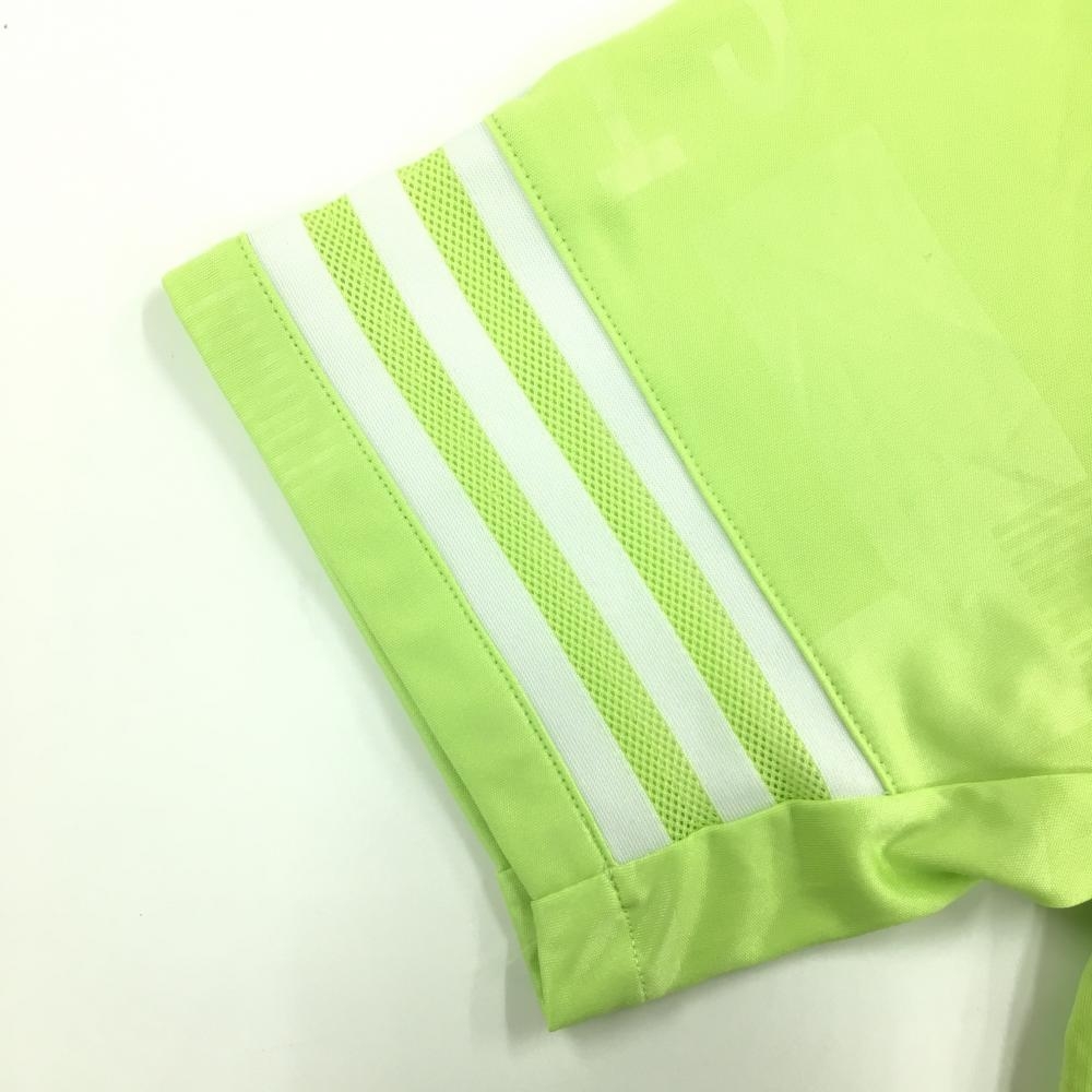 【超美品】アディダス 半袖ポロシャツ イエローグリーン 総柄地模様 袖口3ライン メンズ L ゴルフウェア adidas