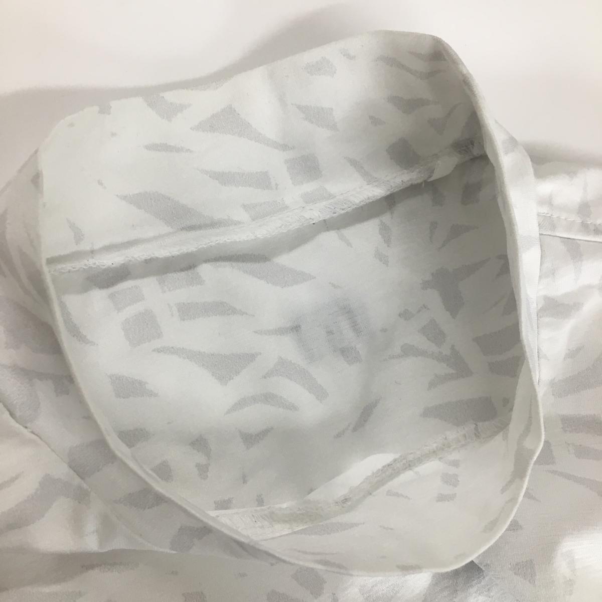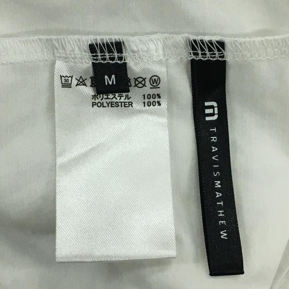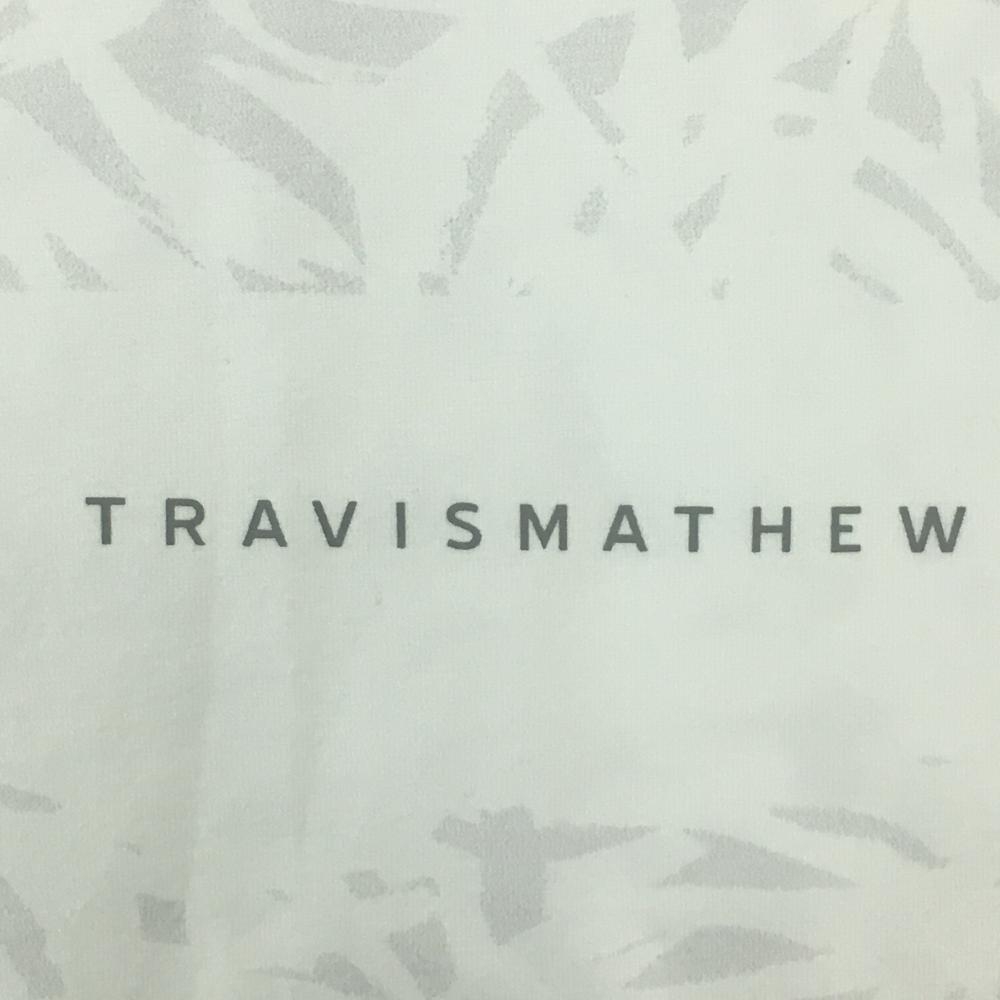 【超美品】トラヴィスマシュー 半袖ハイネックシャツ 白×ライトグレー リーフ調総柄 フロントロゴ メンズ M ゴルフウェア TravisMathew