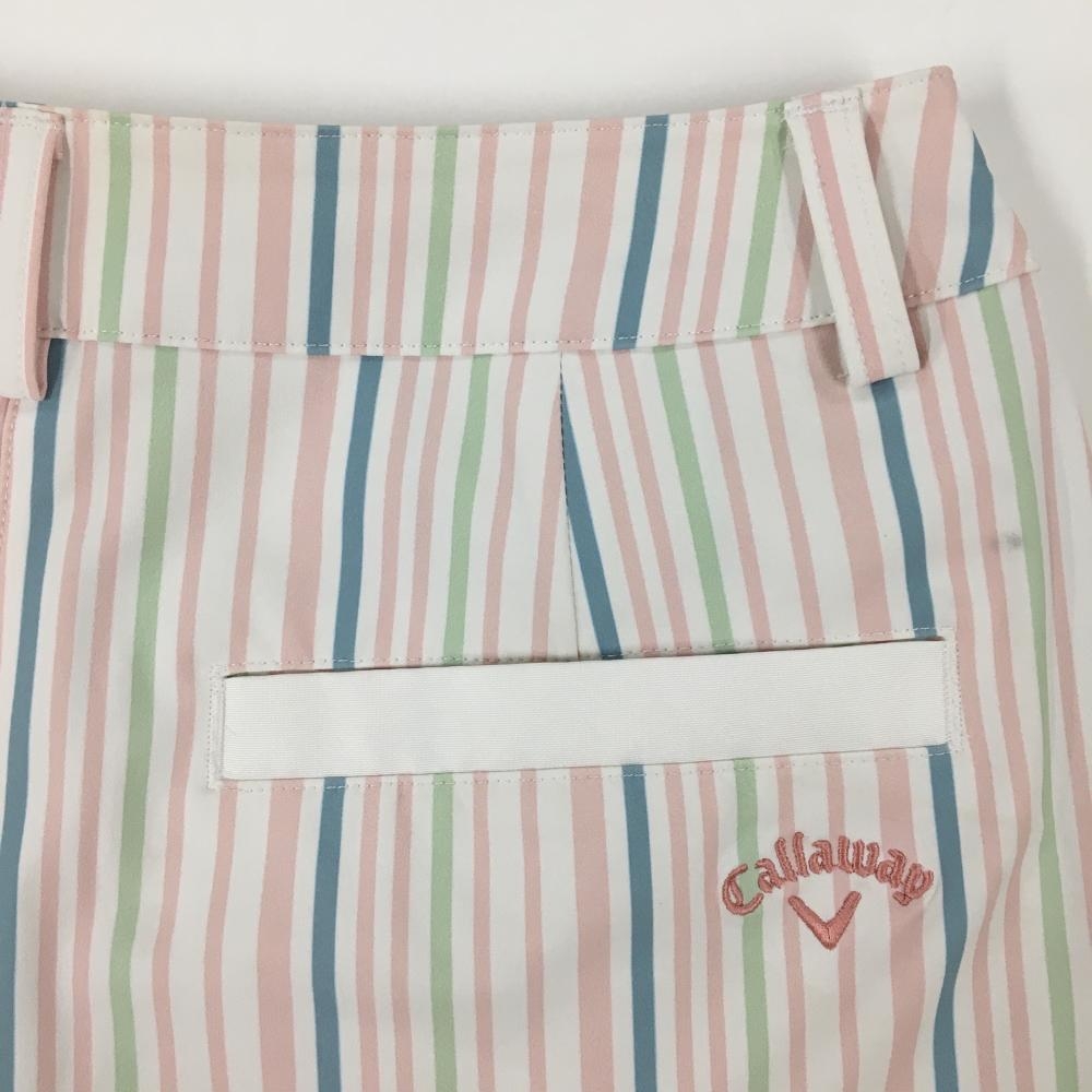 【美品】キャロウェイ ショートパンツ 白×ライトピンク ストライプ ロゴ刺しゅう レディース M ゴルフウェア Callaway