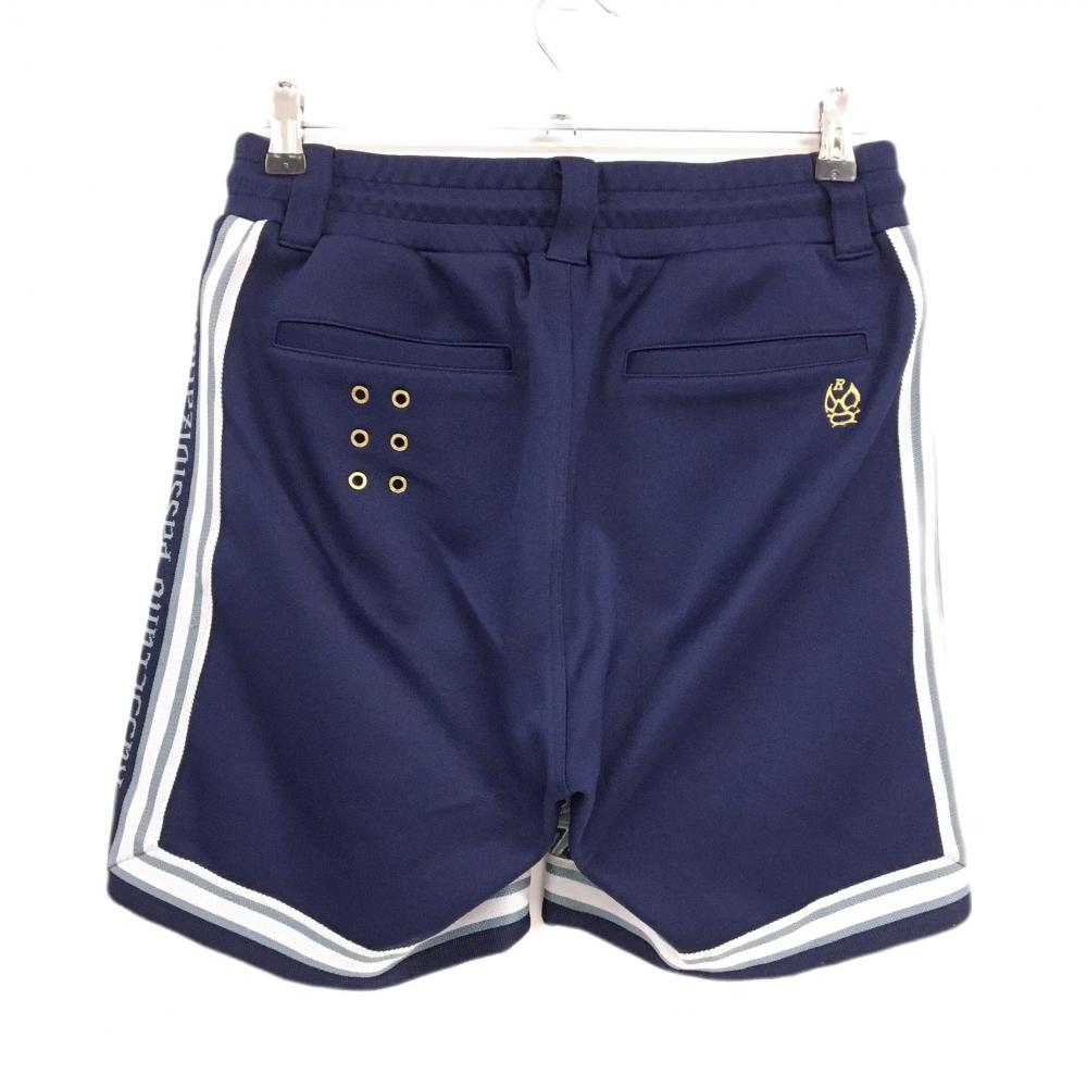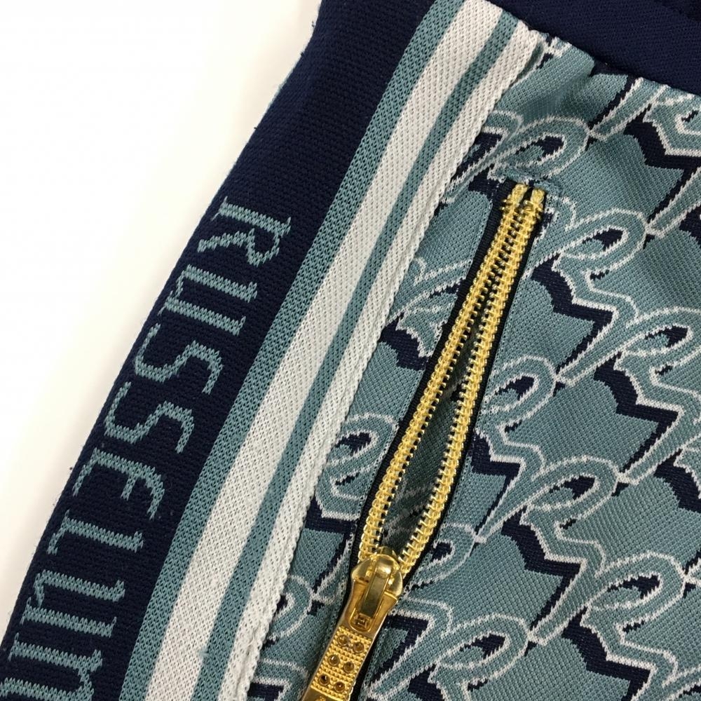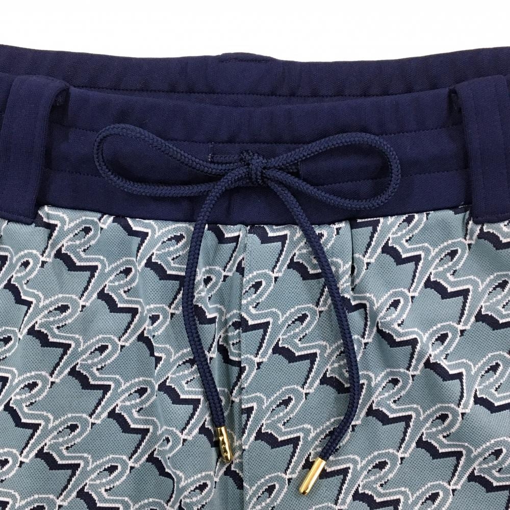 【美品】ラッセルノ ショートパンツ スモーキーブルー×ネイビー 前面総柄 ルチャ メンズ 5(L) ゴルフウェア RUSSELUNO