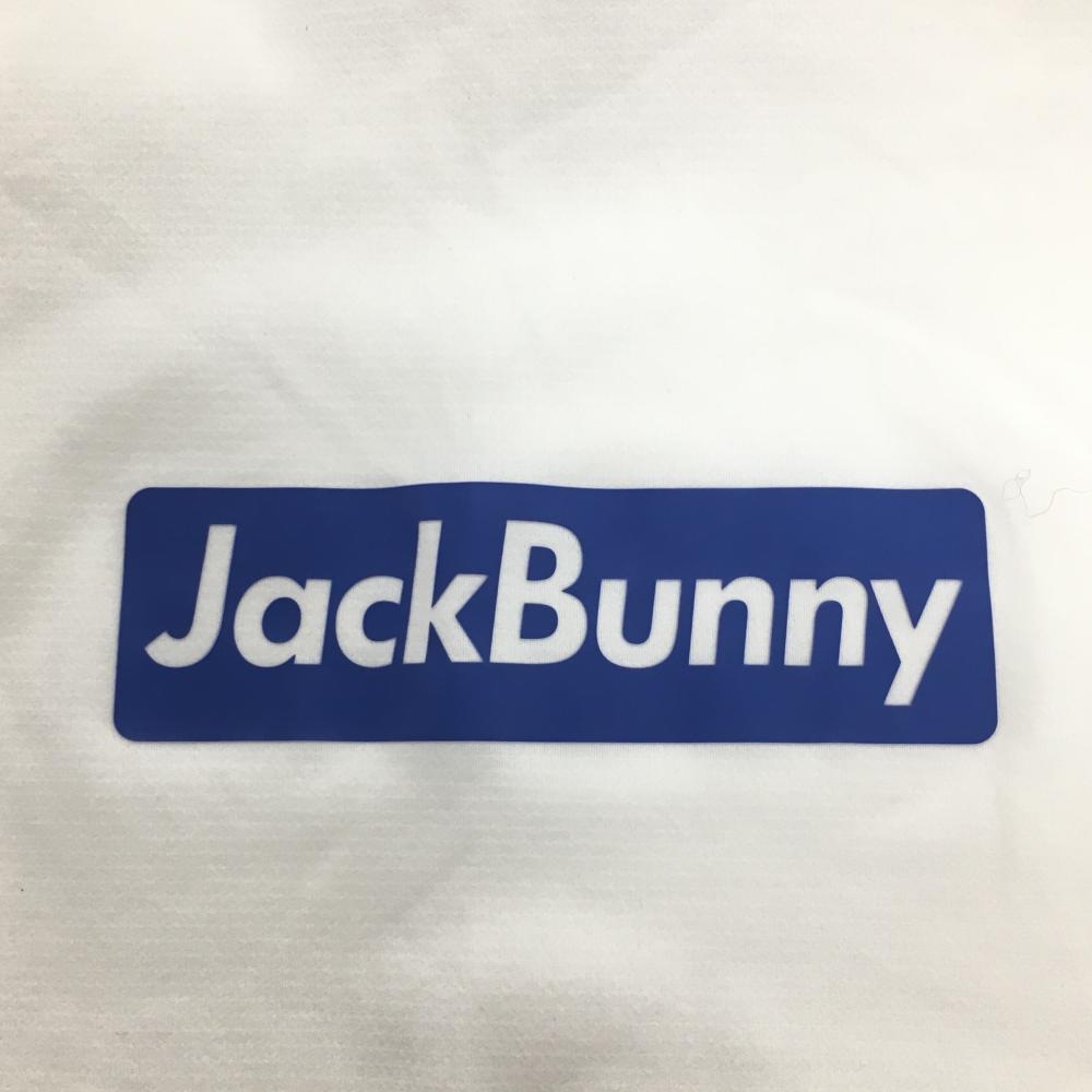 【超美品】ジャックバニー 半袖ハイネックシャツ 白×ブルー フロント・後ろネック下ロゴ メンズ 6(XL) ゴルフウェア Jack Bunny