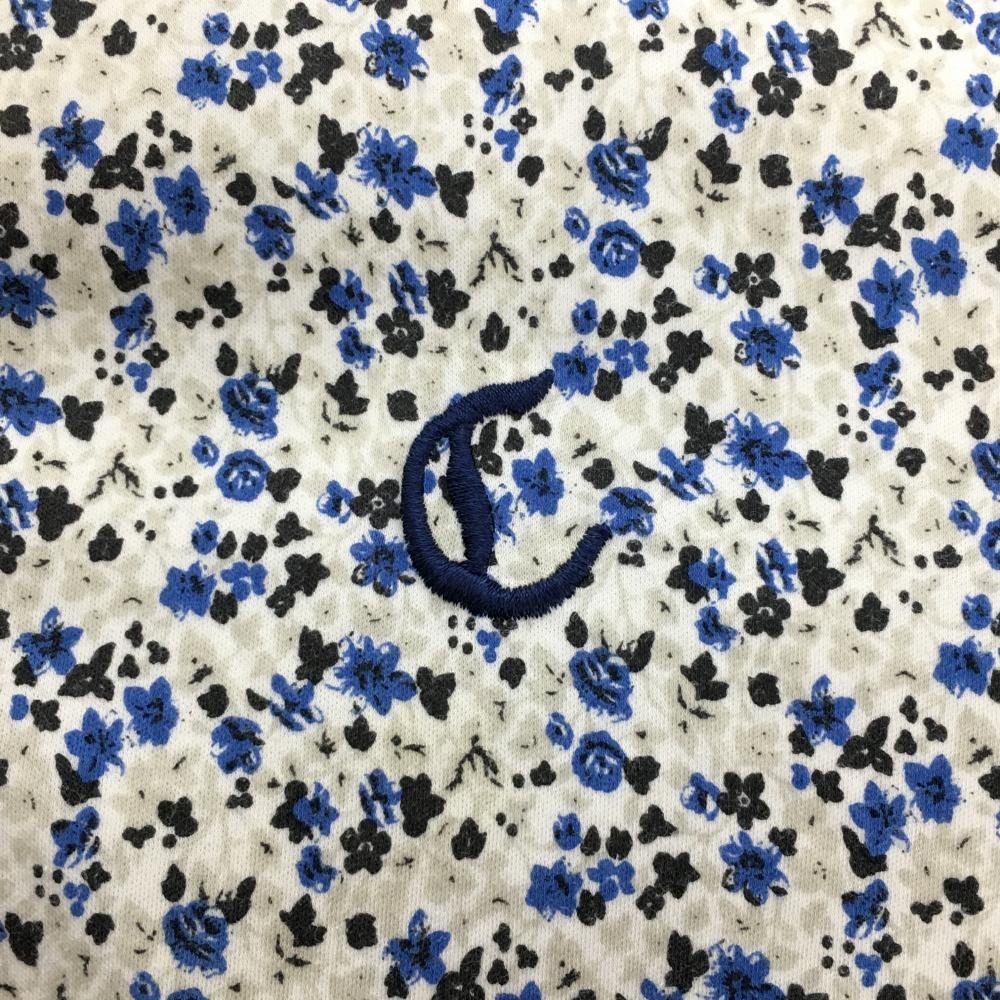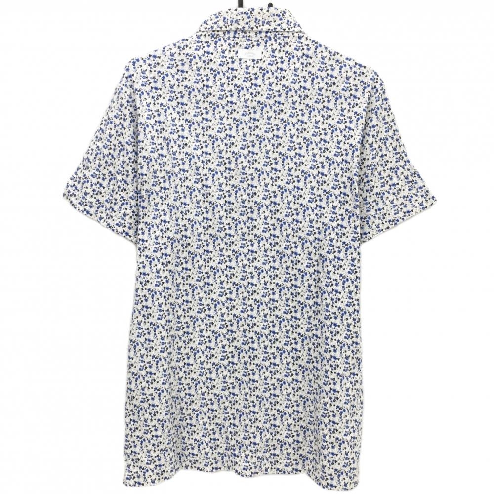 【超美品】キャロウェイ 半袖ポロシャツ 白×ブルー 小花柄 ロゴ刺しゅう メンズ LL ゴルフウェア Callaway