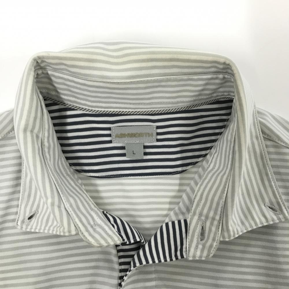 アシュワース 半袖ポロシャツ 白×ライトグレー 細ボーダー ボタンダウン メンズ L ゴルフウェア ASHWORTH