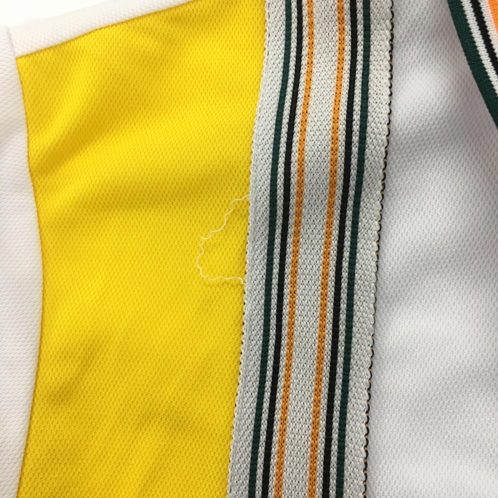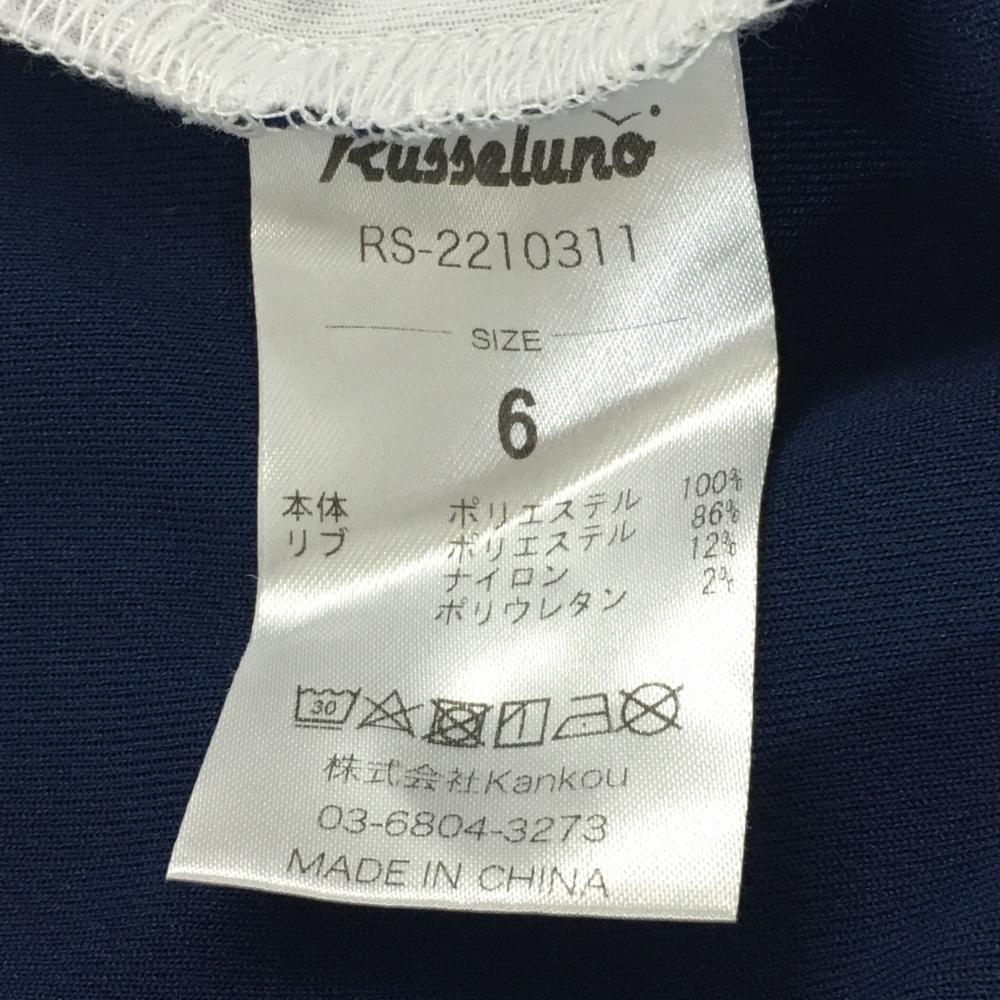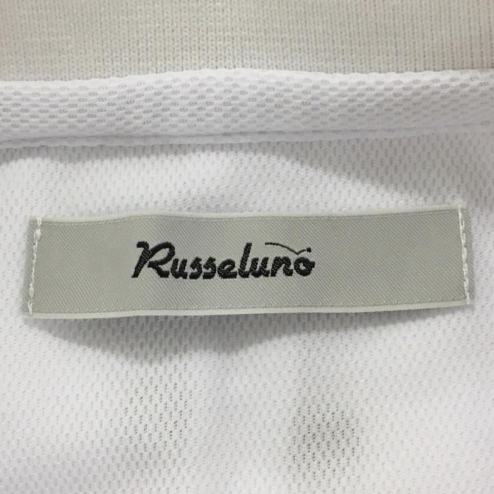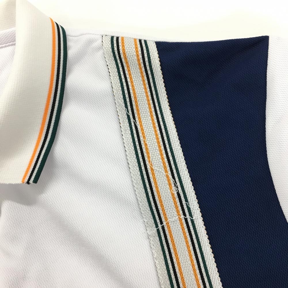 ラッセルノ 半袖ポロシャツ 白×ネイビー×イエロー 一部ストライプ ルチャマスク ハーフジップ メンズ 6(XL) ゴルフウェア RUSSELUNO