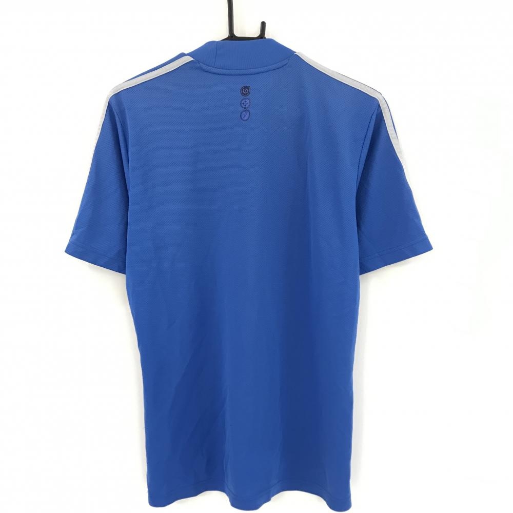 アディダス 半袖ハイネックシャツ ブルー 地模様 3ライングレー メンズ ゴルフウェア adidas