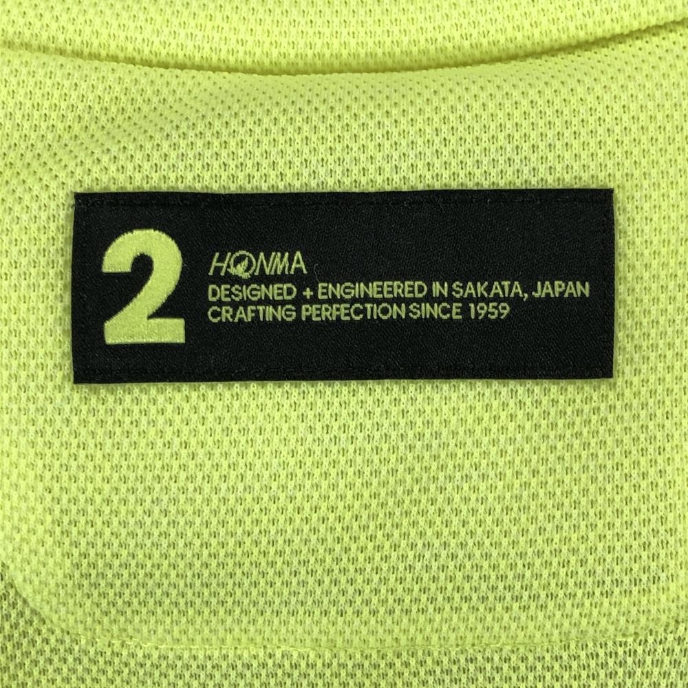 【超美品】ホンマ 半袖ハイネックシャツ 蛍光イエロー×白 袖ナンバリング バイカラー レディース L ゴルフウェア HONMA