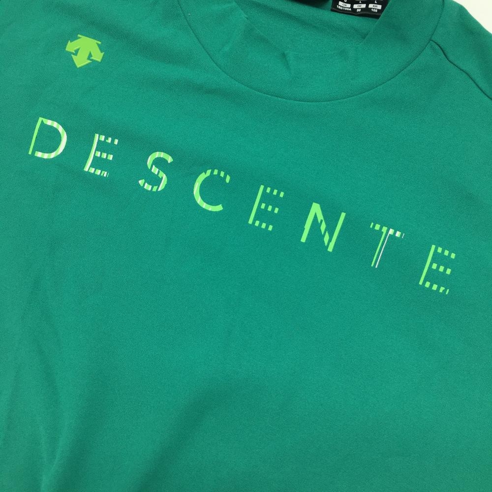 【超美品】デサントゴルフ 半袖ハイネックシャツ グリーン×ライトグリーン フロント・肩ロゴ 中田英寿 メンズ O ゴルフウェア DESCENTE