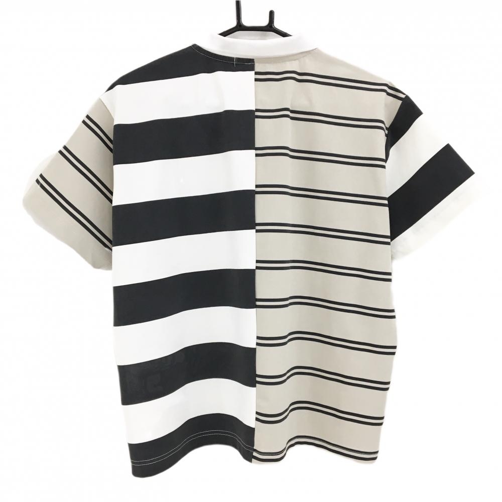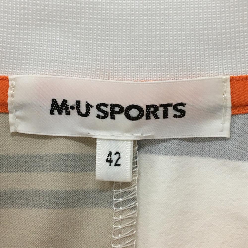 MUスポーツ 半袖ポロシャツ 黒×白×ベージュ ボーダー レディース 42(L) ゴルフウェア M・U SPORTS