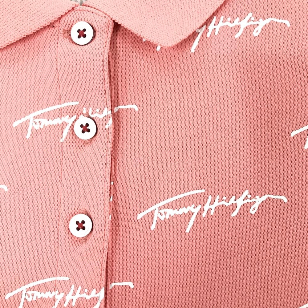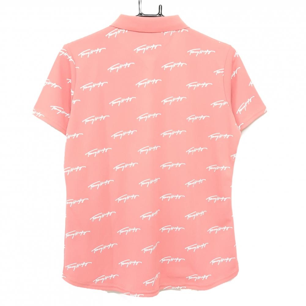 【超美品】トミーヒルフィガー 半袖ポロシャツ ピンク×白 ロゴ総柄 レディース LL ゴルフウェア Tommy Hilfiger Golf