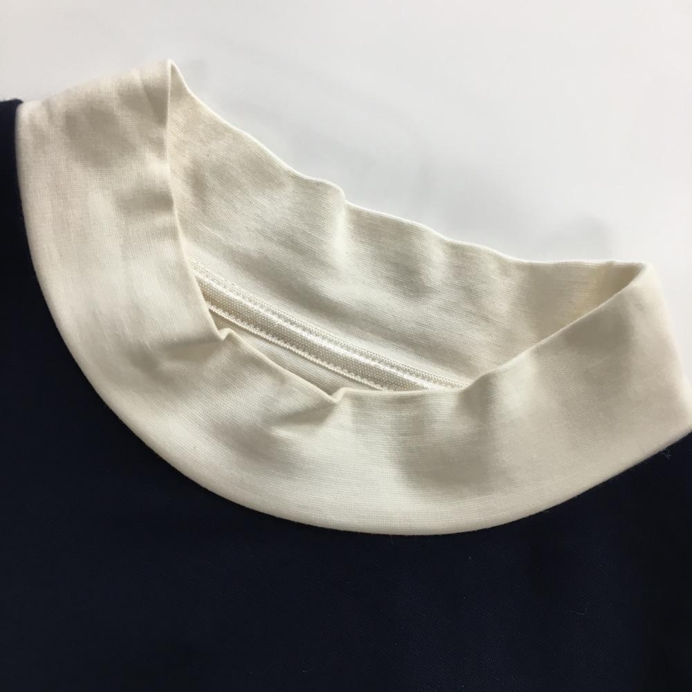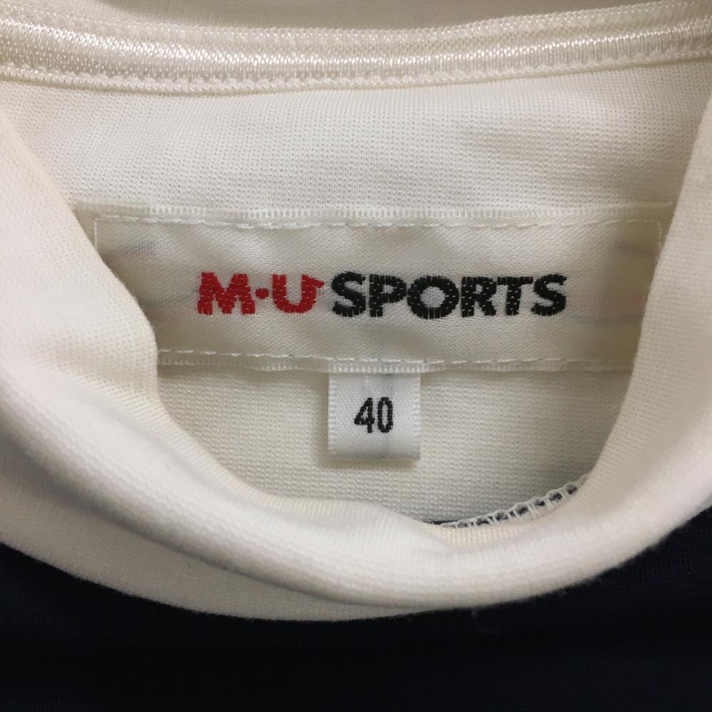 MUスポーツ 半袖ハイネックシャツ 白×ネイビー バイカラー レディース 40(M) ゴルフウェア M・U SPORTS
