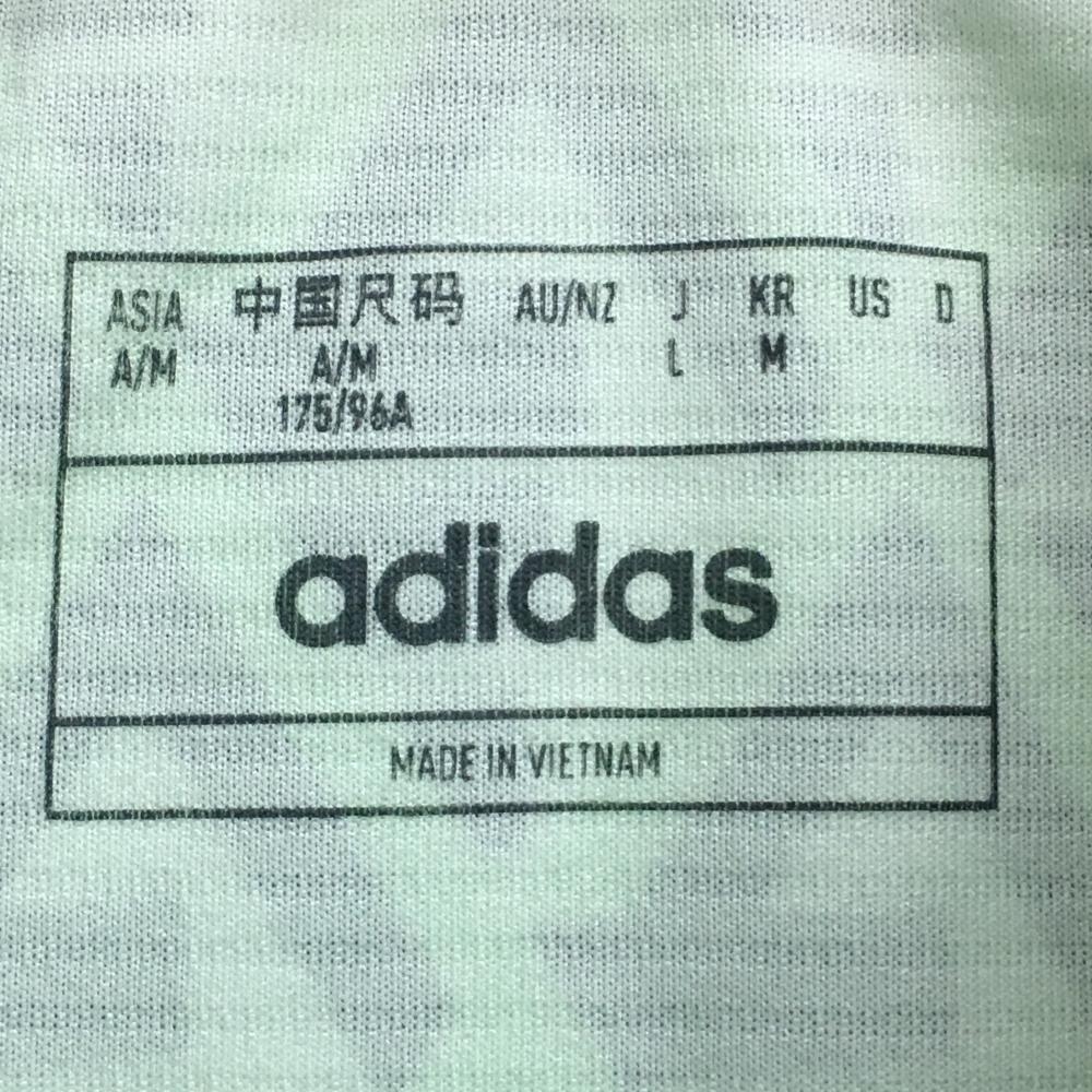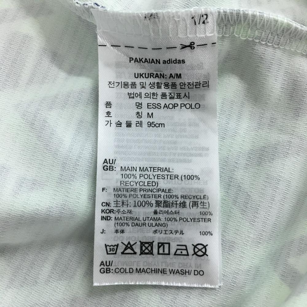 【超美品】アディダス 半袖ポロシャツ 白×ネイビー×ライトグリーン 総柄 胸ロゴ メンズ L ゴルフウェア adidas