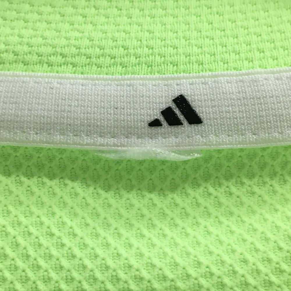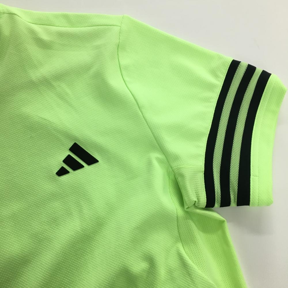 アディダス Tシャツ 蛍光グリーン系×黒 袖3ライン・一部メッシュ 胸ロゴ メンズ ゴルフウェア 2024年モデル adidas