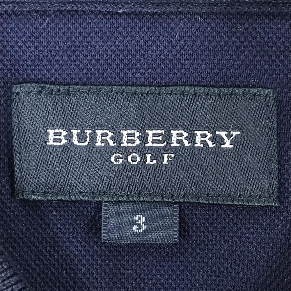 【超美品】バーバリーゴルフ 半袖ポロシャツ ネイビー 襟裏ロゴ メンズ 3(L) ゴルフウェア BURBERRY GOLF