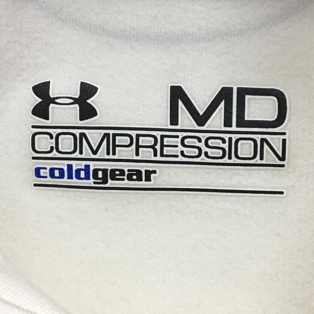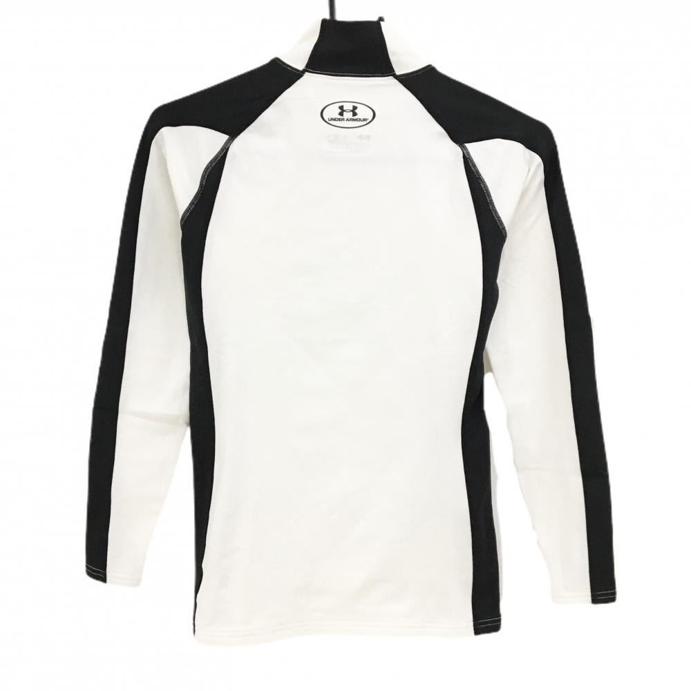 【超美品】アンダーアーマー ハイネックインナーシャツ 白×黒 裏起毛 コンプレッション coldgear メンズ MD ゴルフウェア UNDER ARMOUR