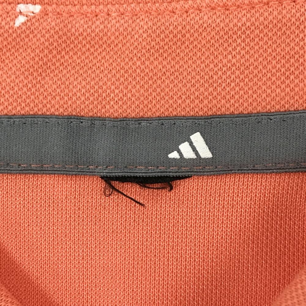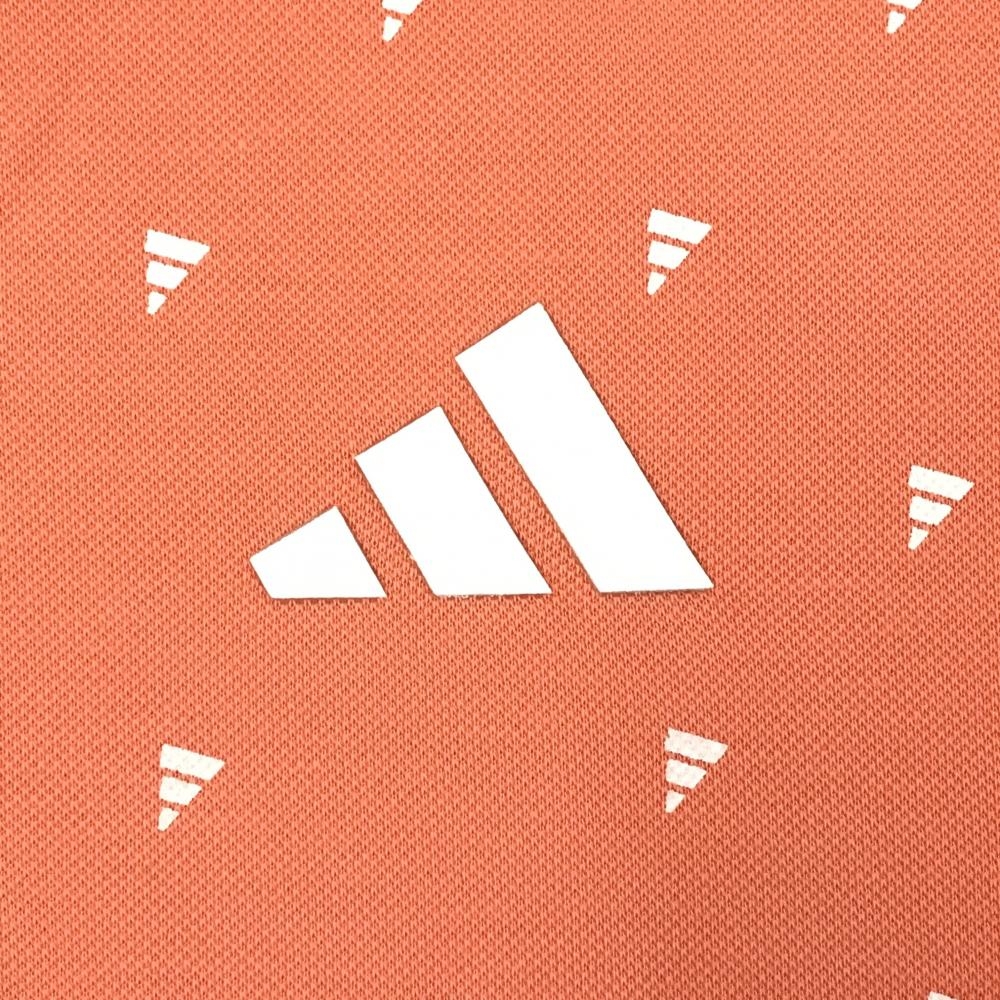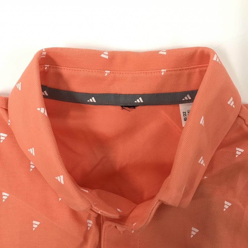 【美品】アディダス 半袖ポロシャツ サーモンピンク×白 ロゴ総柄 胸ロゴ メンズ ゴルフウェア adidas