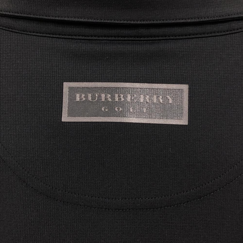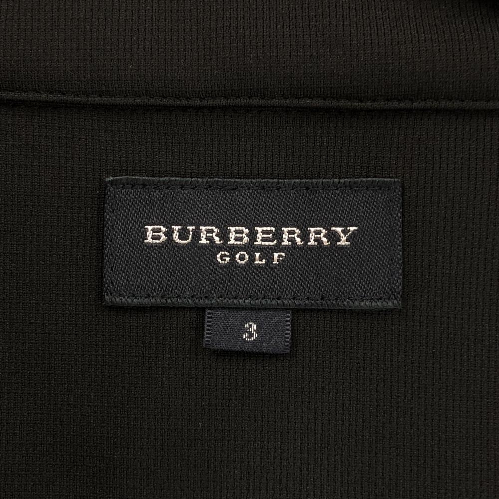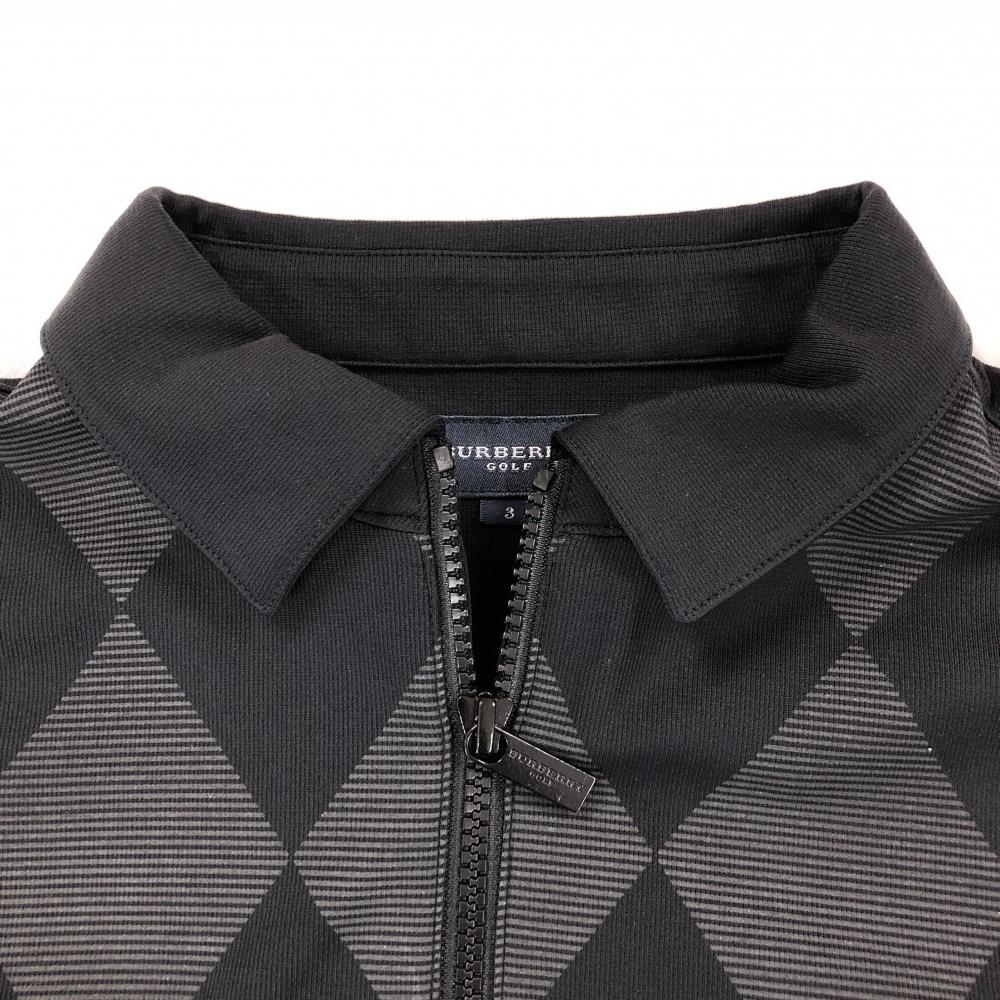 【超美品】バーバリーゴルフ 半袖ポロシャツ 黒×グレー 前面ダイヤ柄 ハーフジップ メンズ 3(L) ゴルフウェア BURBERRY GOLF