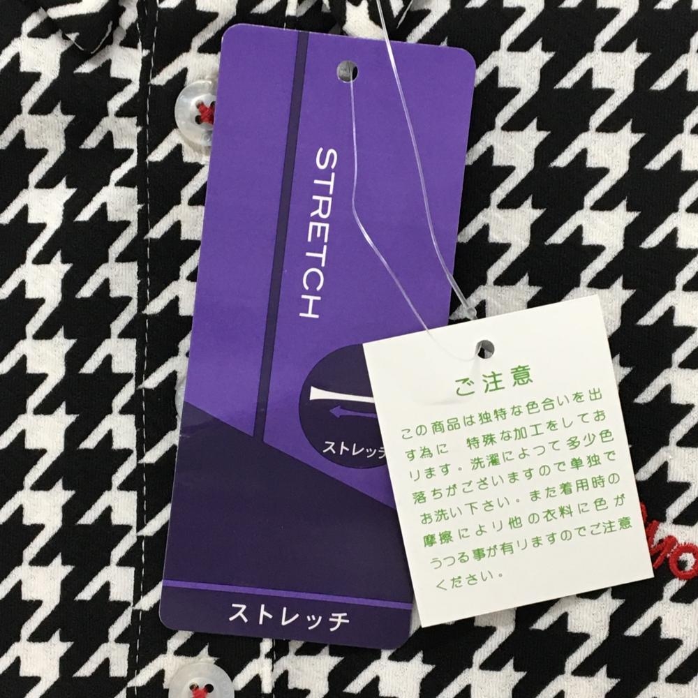 【新品】コモンゴルフ 長袖ポロシャツ 白×黒 千鳥格子 ボタンダウン ストレッチ メンズ M ゴルフウェア COMONGOLF