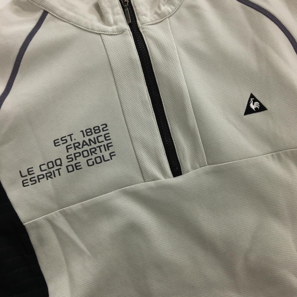 【美品】ルコックゴルフ 長袖ハイネックシャツ ライトグレー×黒 サイド切替 ハーフジップ メンズ M ゴルフウェア le coq sportif