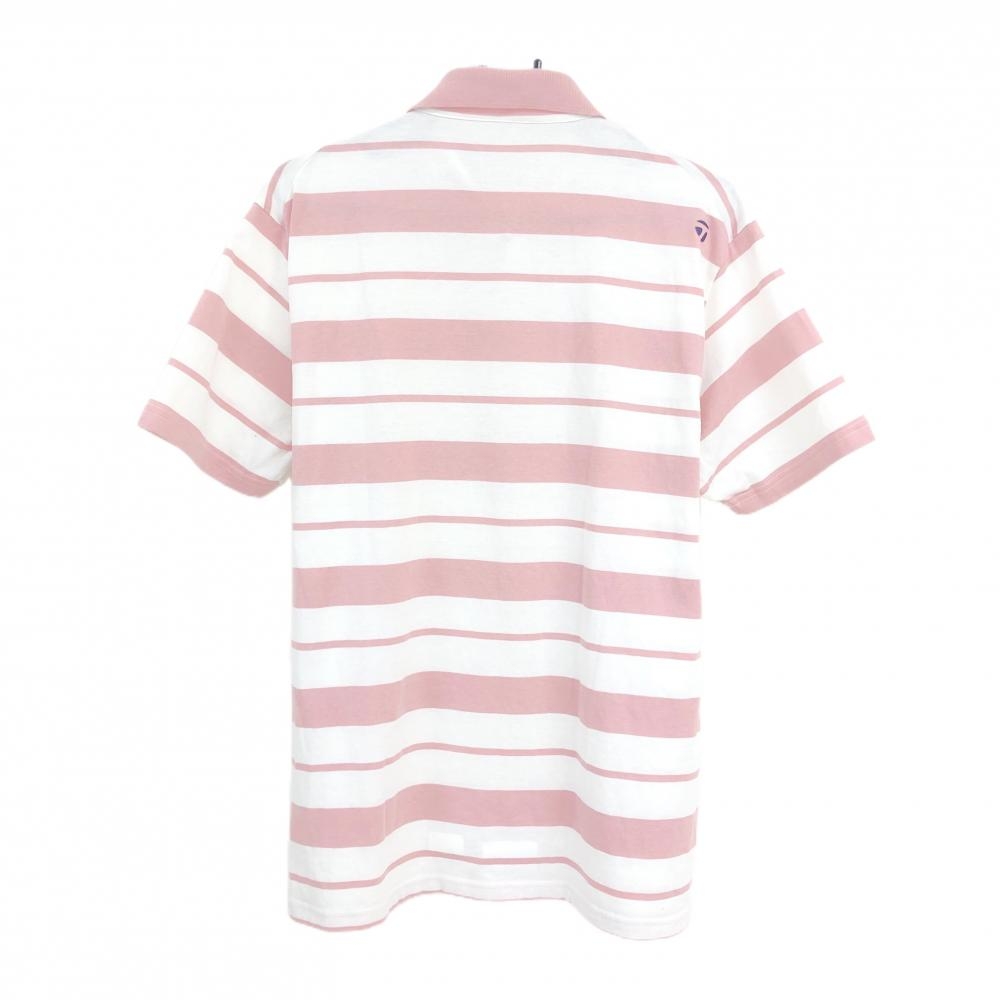【美品】テーラーメイド 半袖ポロシャツ ライトピンク×白 ボーダー メンズ O(XL) ゴルフウェア TaylorMade