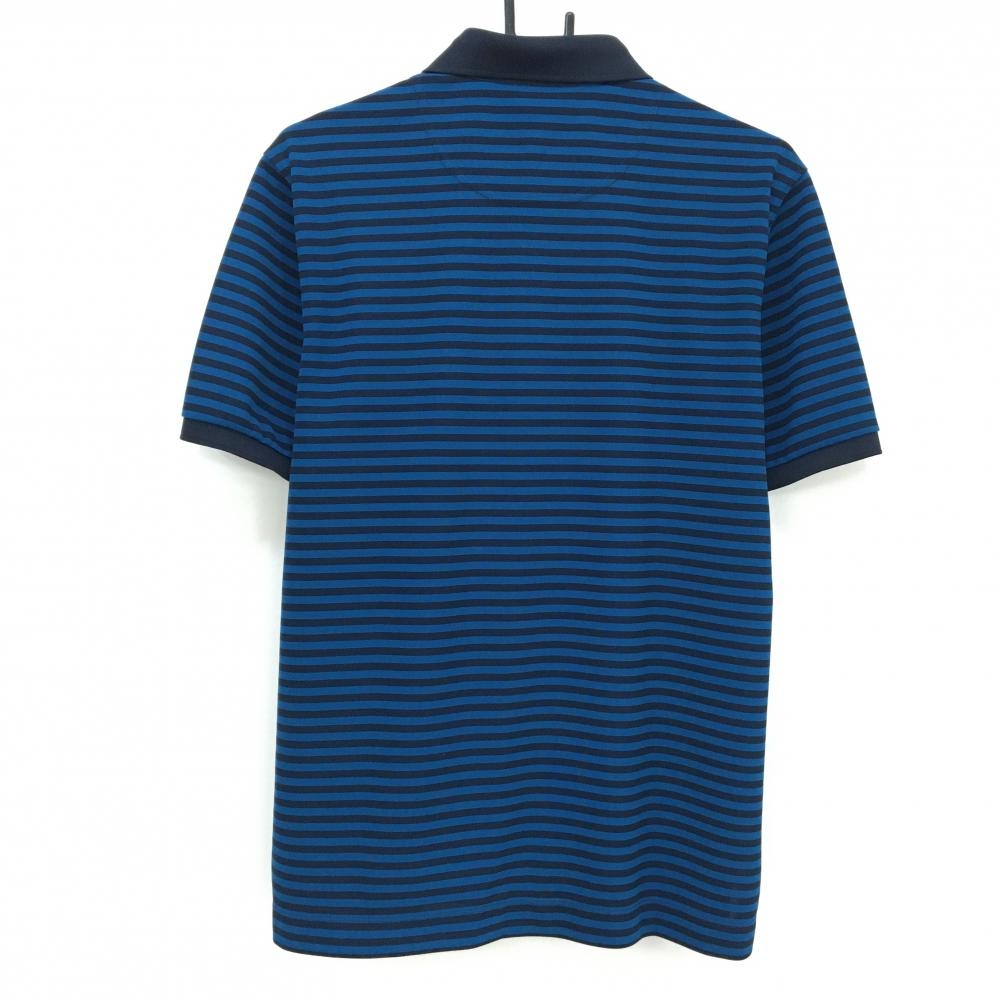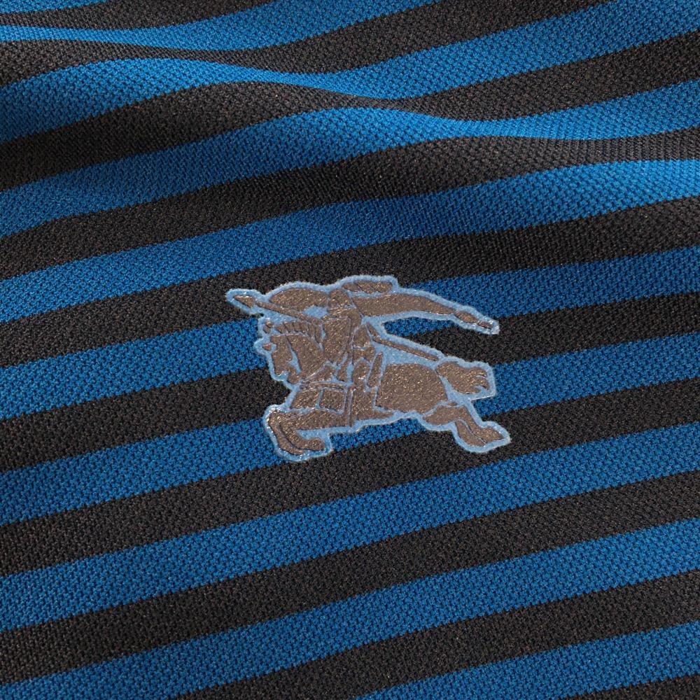 【超美品】バーバリーゴルフ 半袖ポロシャツ ブルー系×ダークネイビー系 ボーダー メンズ 3(L) ゴルフウェア BURBERRY GOLF