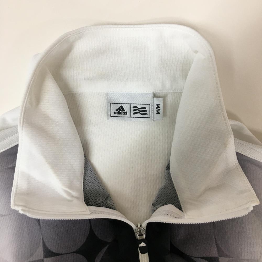 【美品】アディダス 半袖ハイネックシャツ 白×黒 ハーフジップ グラデーション メンズ M/M ゴルフウェア adidas