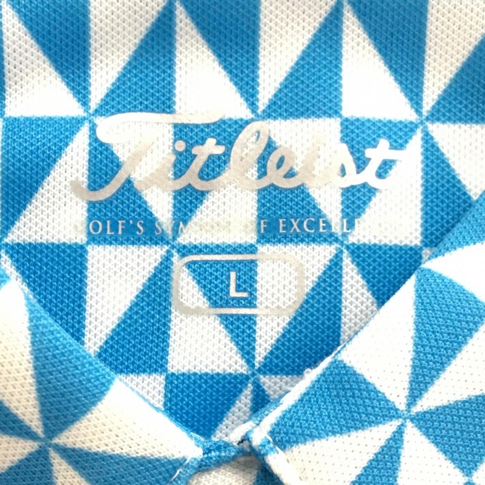 【超美品】タイトリスト 半袖ポロシャツ 白×ブルー 総柄 ボタンダウン 袖ロゴ メンズ L ゴルフウェア TITLEIST