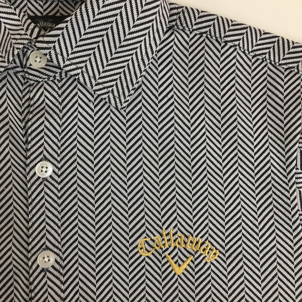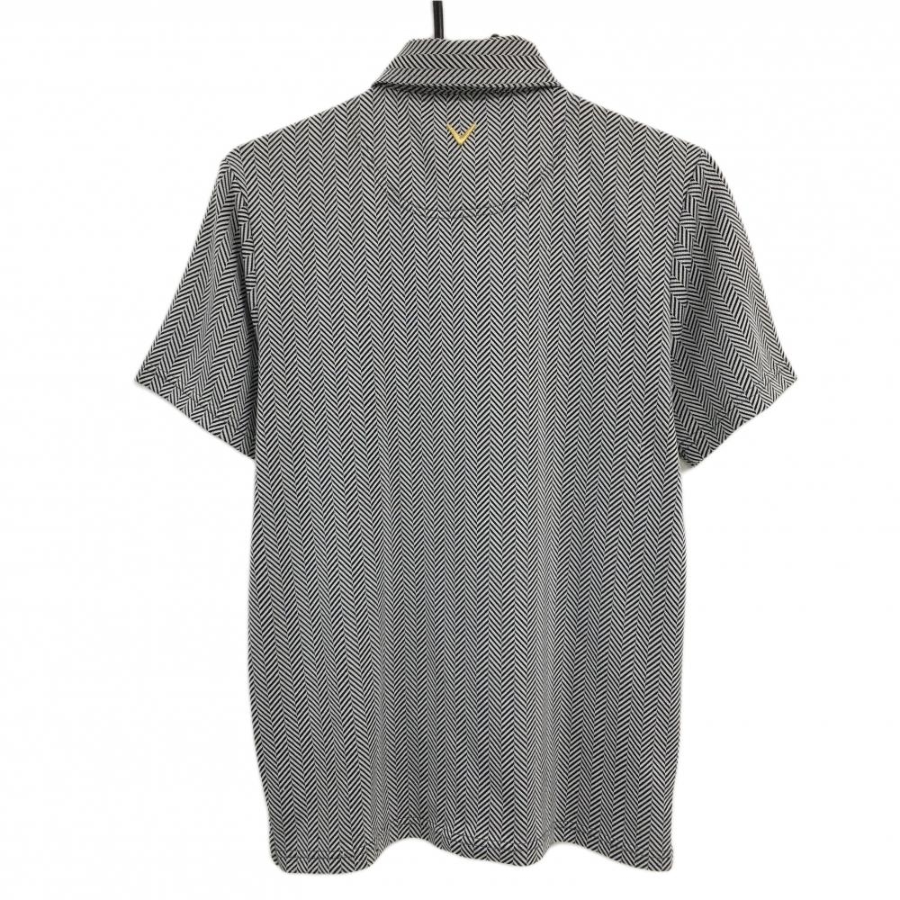 【美品】キャロウェイ 半袖ポロシャツ ライトグレー×黒 ヘリンボーン柄 ロゴ刺しゅう メンズ M ゴルフウェア Callaway