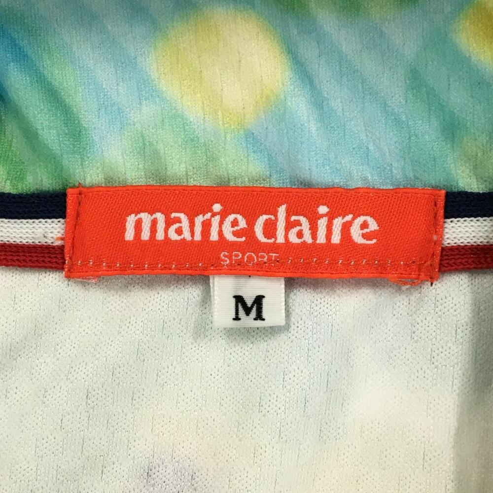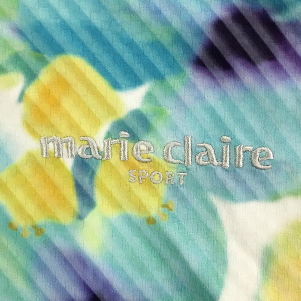 【超美品】マリクレールスポール 半袖ハイネックシャツ 白×グリーン 花柄 ハーフジップ レディース M ゴルフウェア marie claire