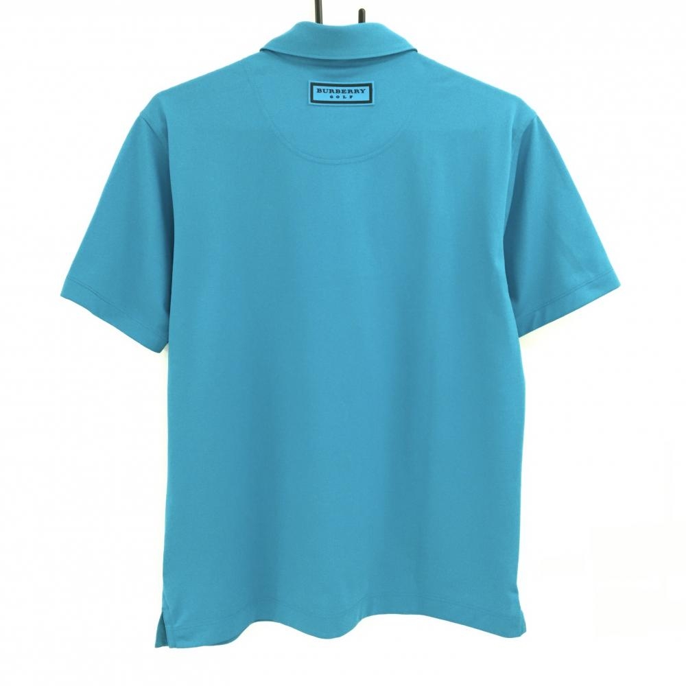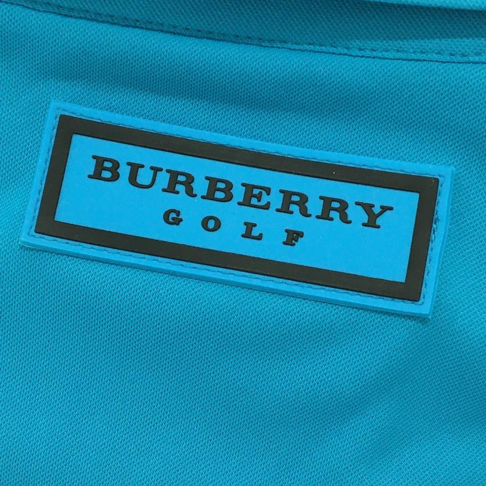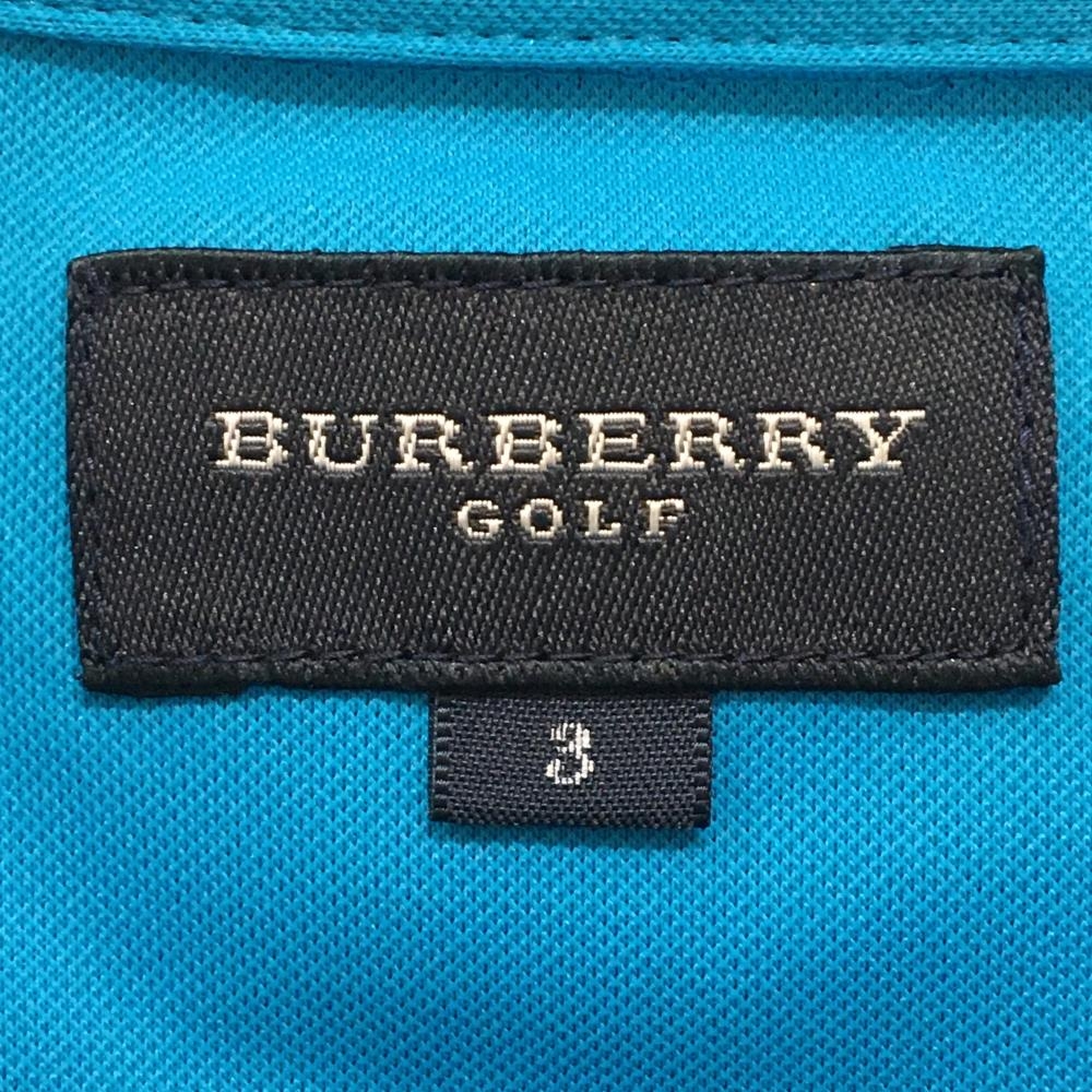 【超美品】バーバリーゴルフ 半袖ポロシャツ ライトブルー 前面ダイヤ柄 ハーフジップ メンズ 3(L) ゴルフウェア BURBERRY GOLF