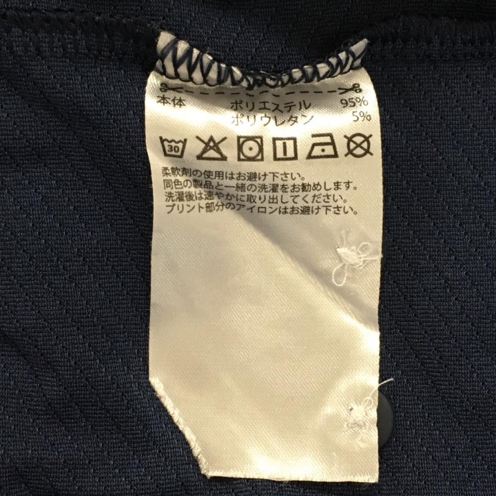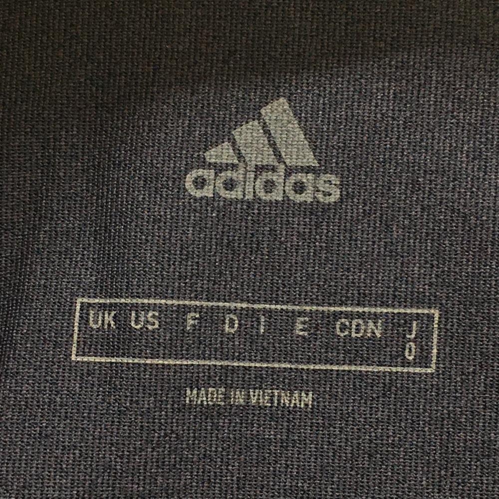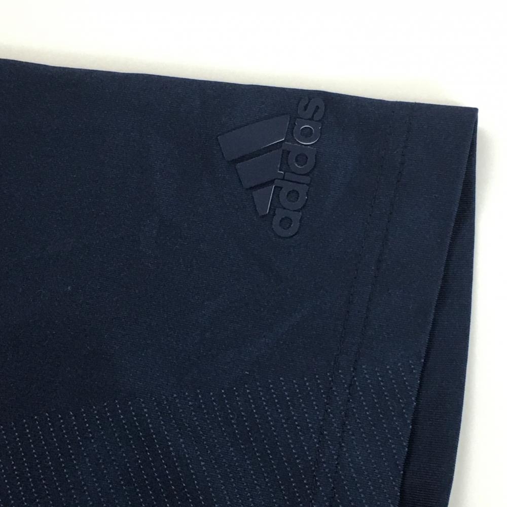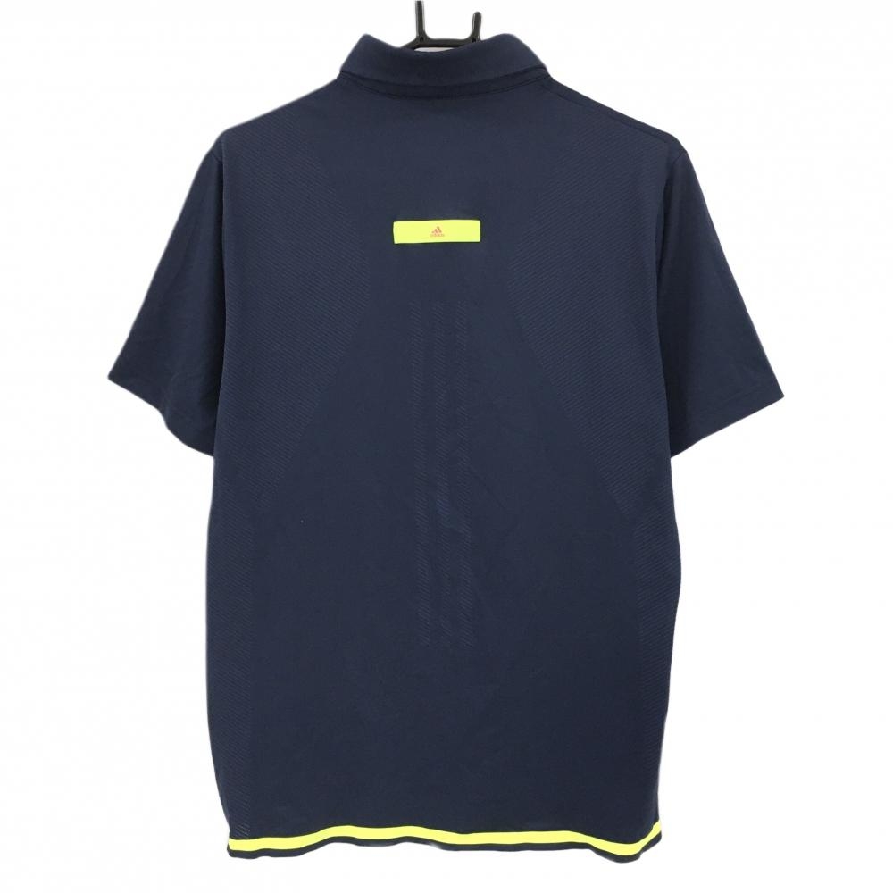 【美品】アディダス 半袖ポロシャツ ネイビー 地模様 裾ラインイエロー メンズ O(XL) ゴルフウェア adidas