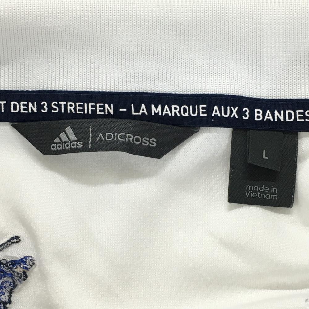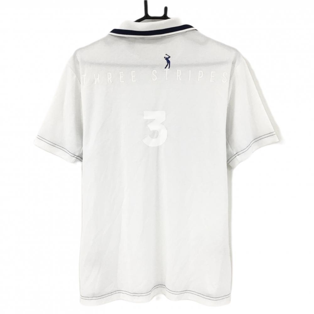 【超美品】アディダス 半袖スキッパーシャツ 白×ネイビー 襟ライン 後ろネック下刺しゅう メンズ L ゴルフウェア adidas