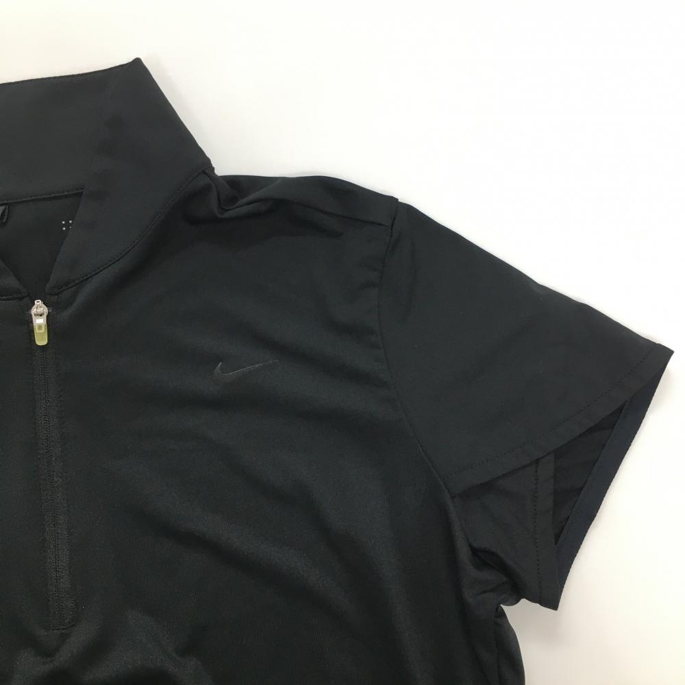 【超美品】ナイキゴルフ 半袖ハイネックシャツ 黒 ロゴプリント ハーフジップ DRI-FIT レディース M ゴルフウェア NIKE