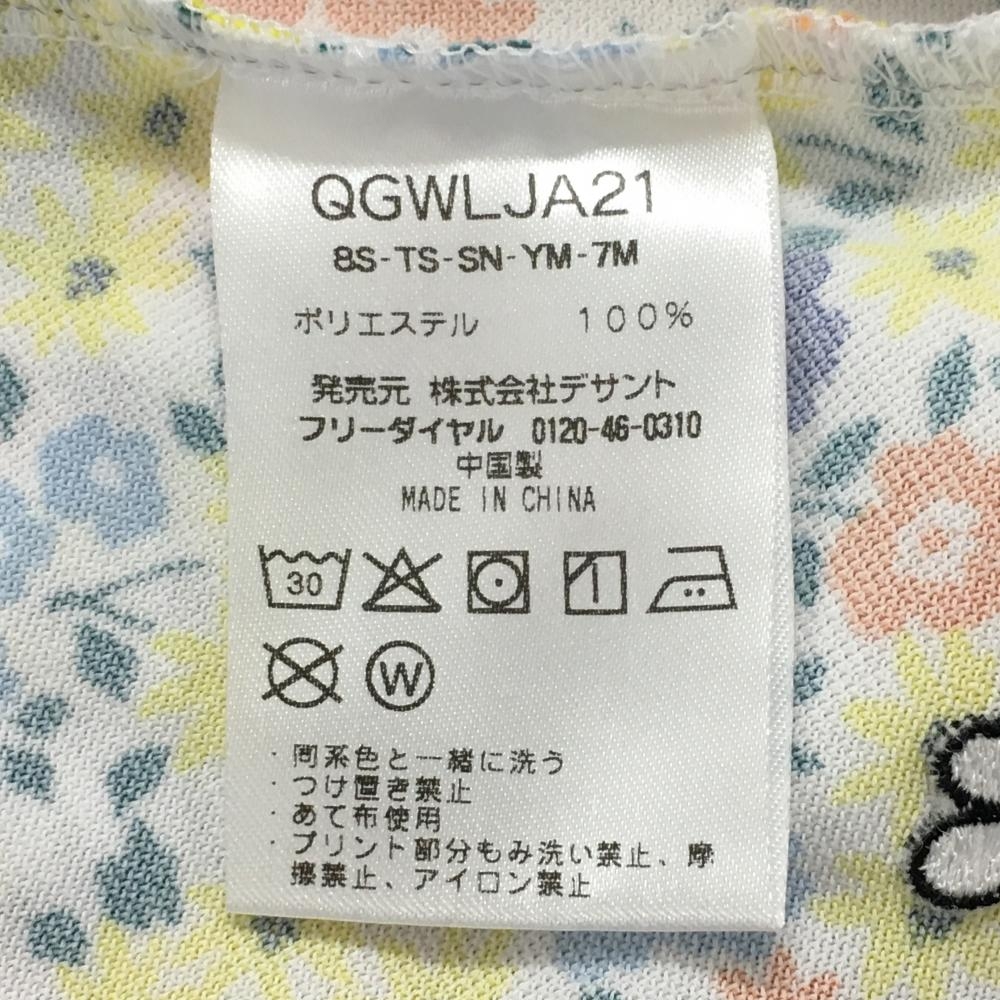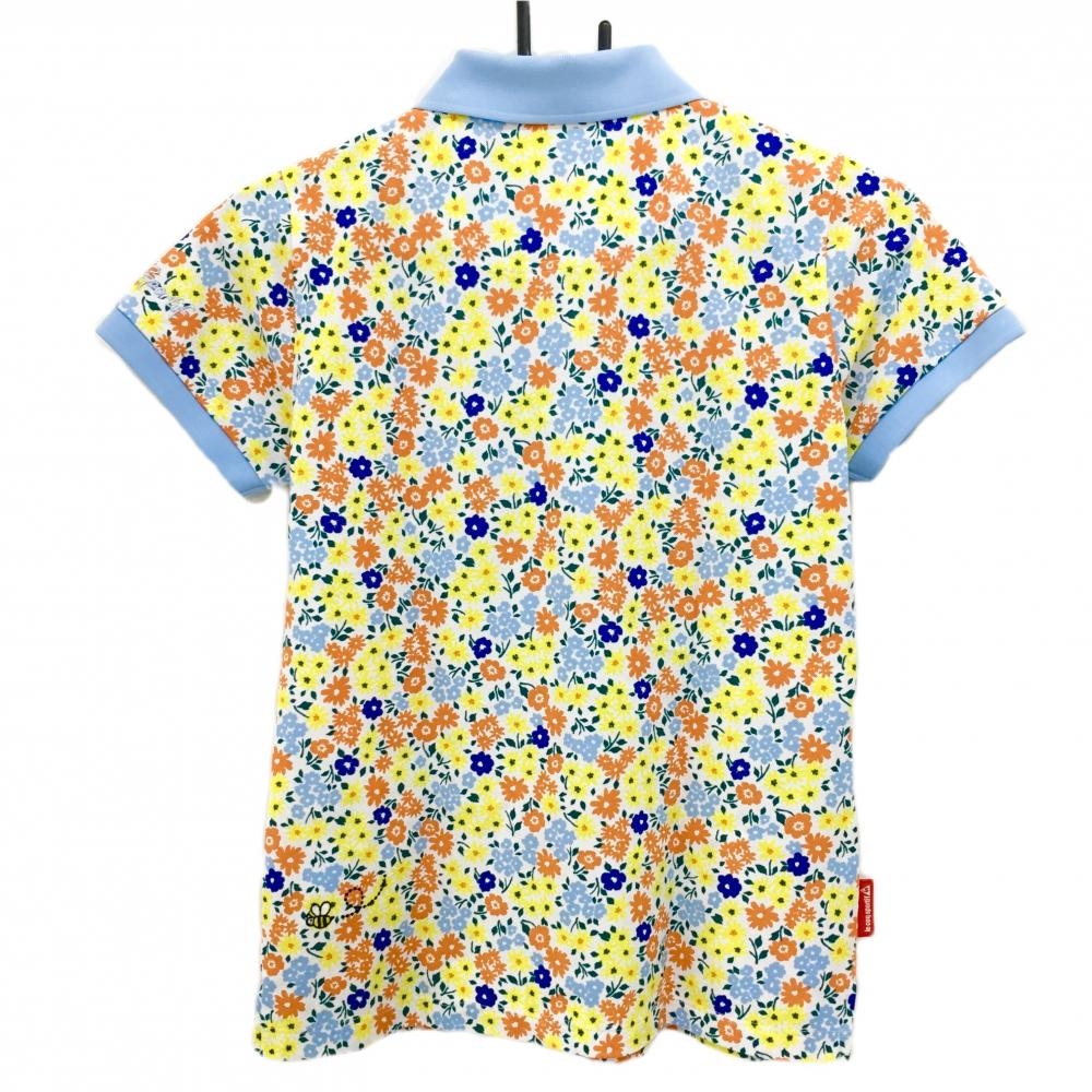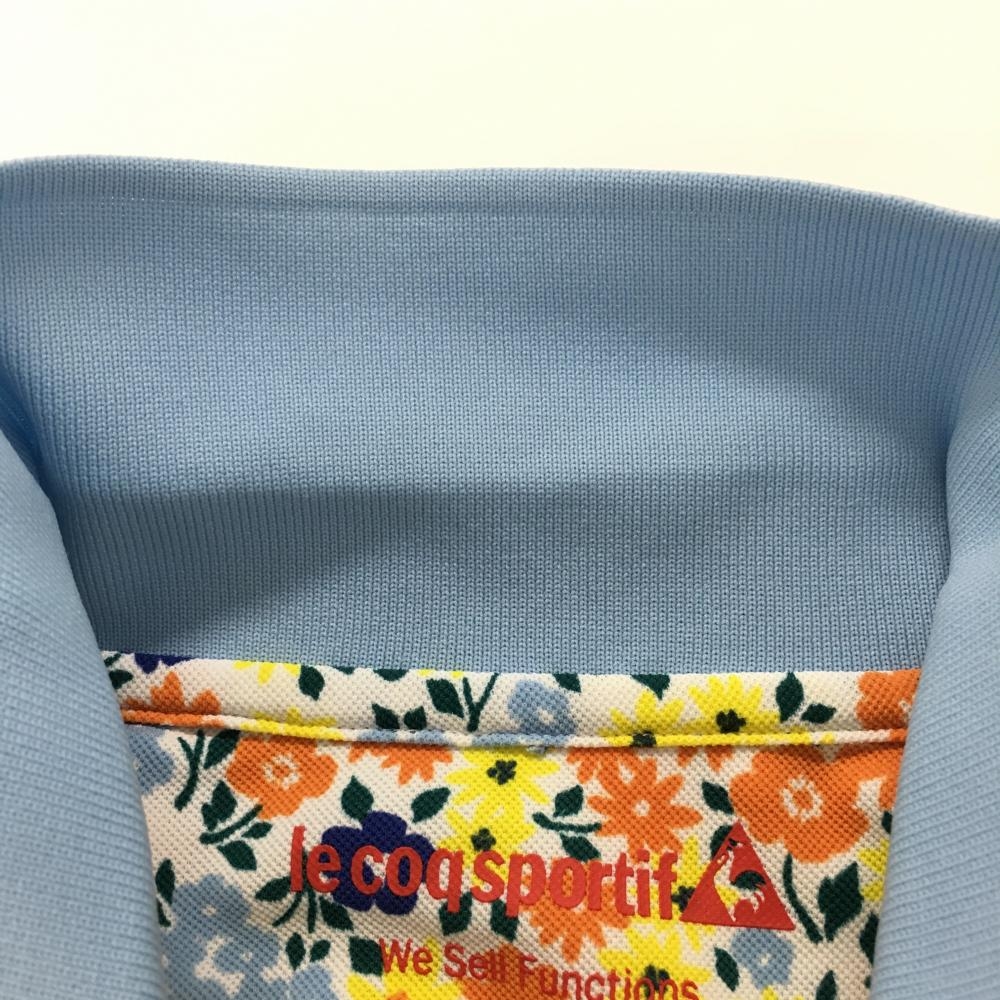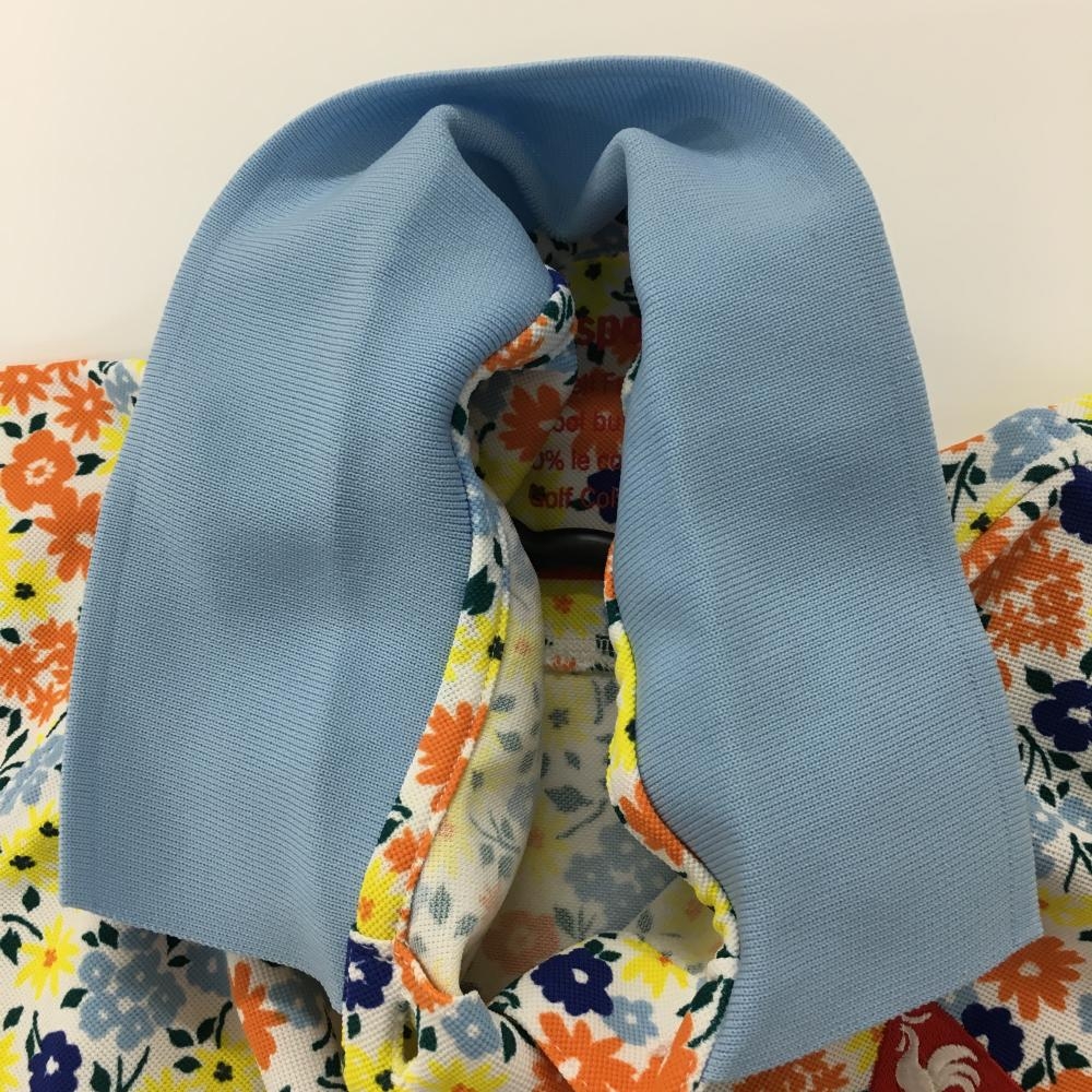 【美品】ルコックゴルフ 半袖ポロシャツ 白×マルチカラー×ライトブルー 花柄 ロゴ刺しゅう レディース M ゴルフウェア le coq sportif