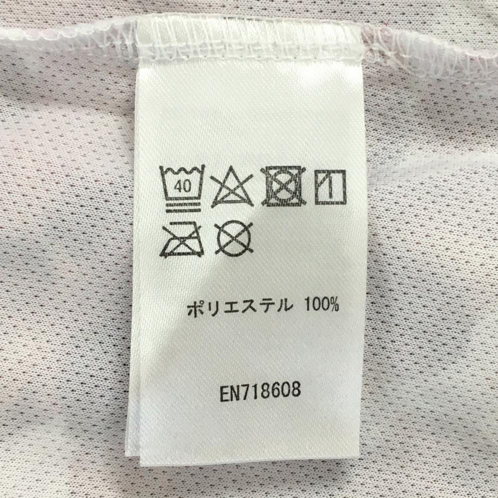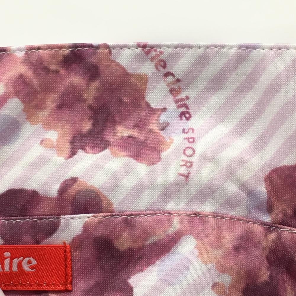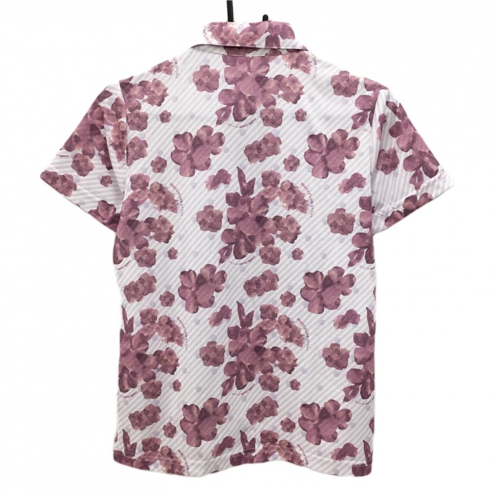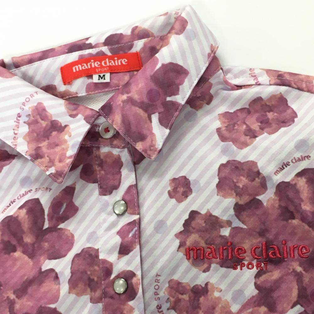 【美品】マリクレールスポール 半袖ポロシャツ 白×パープルピンク 花柄 斜めストライプ レディース M ゴルフウェア marie claire