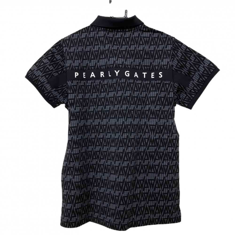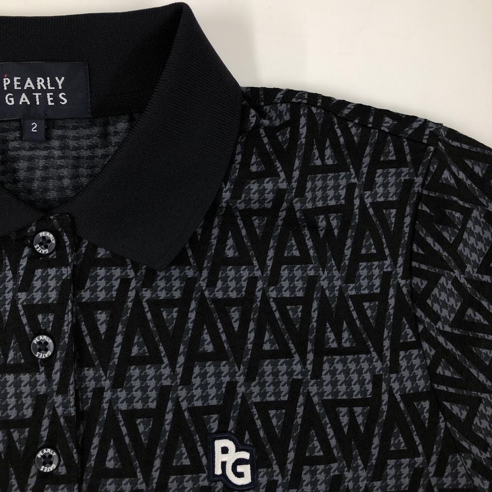 【超美品】パーリーゲイツ 半袖ポロシャツ グレー×黒×ネイビー 総柄 千鳥格子 レディース 2(L) ゴルフウェア 2024年モデル PEARLY GATES